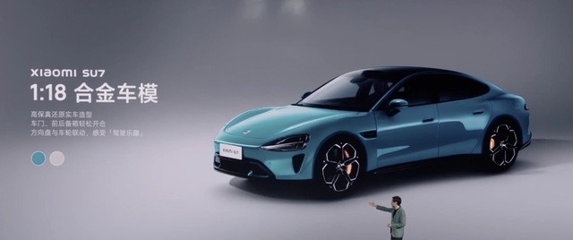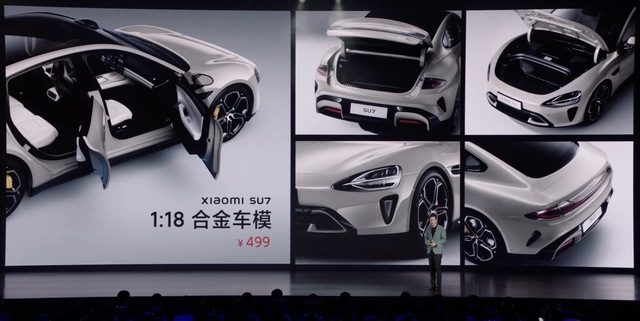 Trong buổi ra mắt xe điện SU7 vào ngày 28/3, CEO Xiaomi Lei Jun đã giới thiệu mô hình xe SU7 tỉ lệ 1:18 được chế tạo thủ công với hai phiên bản màu xanh lam và xám. Giá bán của mô hình này là 499 nhân dân tệ (1.7 triệu đồng).