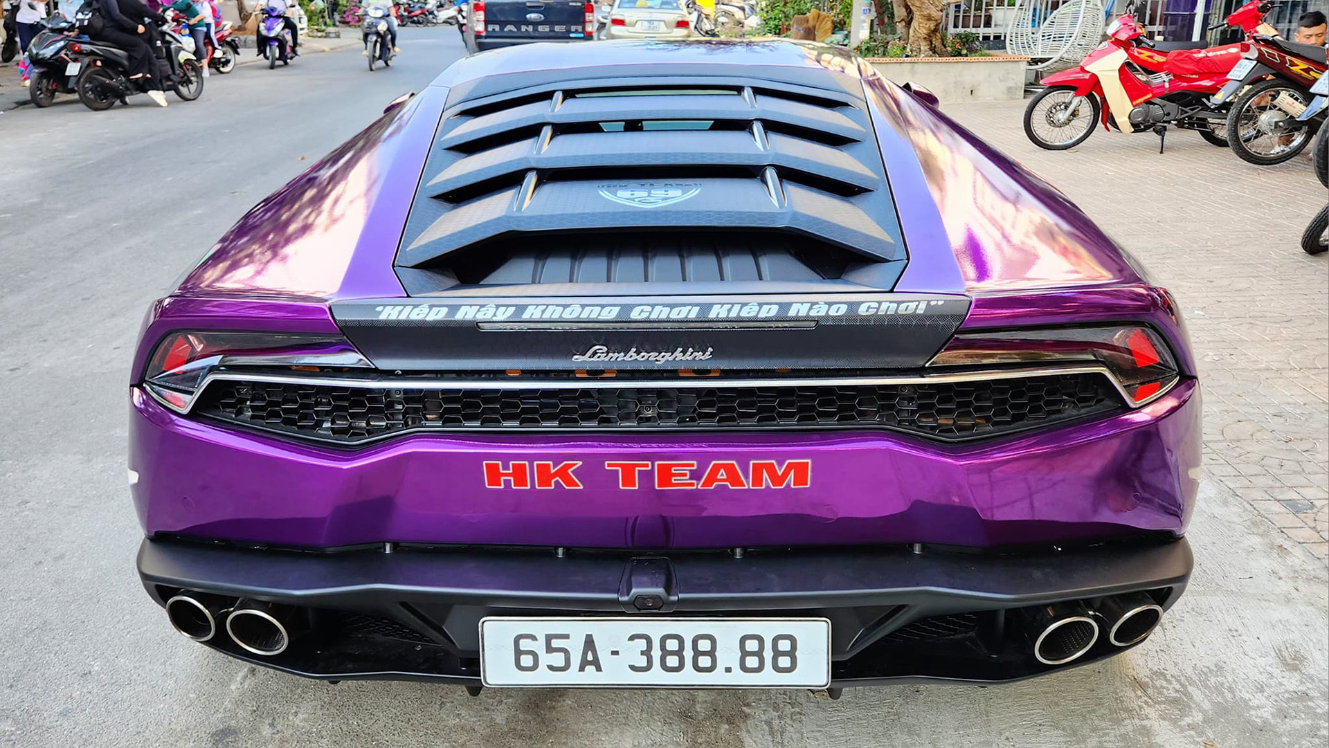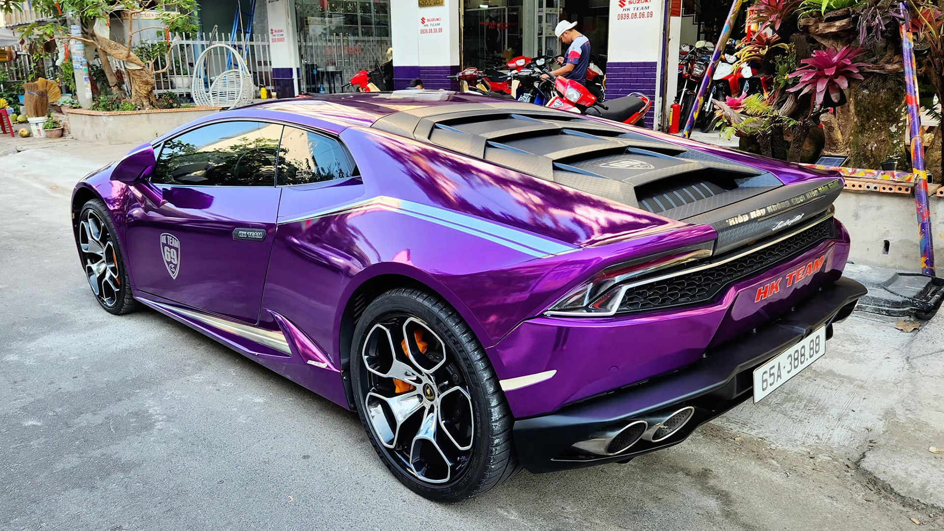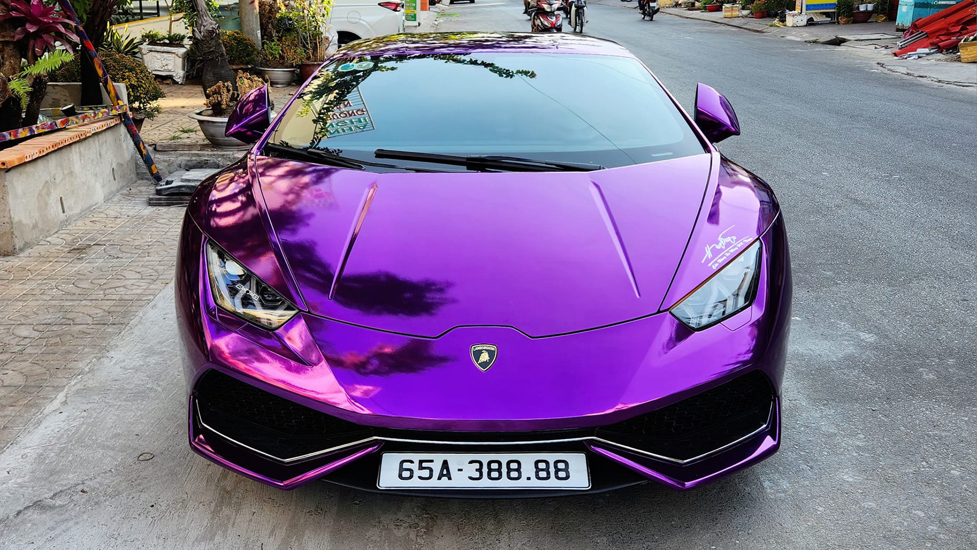 Mới đây, một đại gia ở Cần Thơ ( tên H.D) chuyên kinh doanh xe máy biển số đẹp đã tậu về chiếc Lamborghini Huracan LP610-4 mang "bộ áo tím lịm" độc đáo, gây ấn tượng mạnh trong giới chơi xe khi gắn biển số định danh có dãy số tứ quý 8 ngay sau khi giao xe. Đáng chú ý, biển số 65A-388.88 chính là biển số từng bị Công ty Đấu giá hợp danh Việt Nam bất ngờ dừng đấu theo yêu cầu của Bộ Công an trong phiên đấu giá biển số chiều ngày 25/09/2023 khi chỉ còn 6 phút nữa là kết thúc phiên. Lý do được cho là có dấu hiệu bất thường trong quá trình trả giá, nghi biển số bị dìm giá.