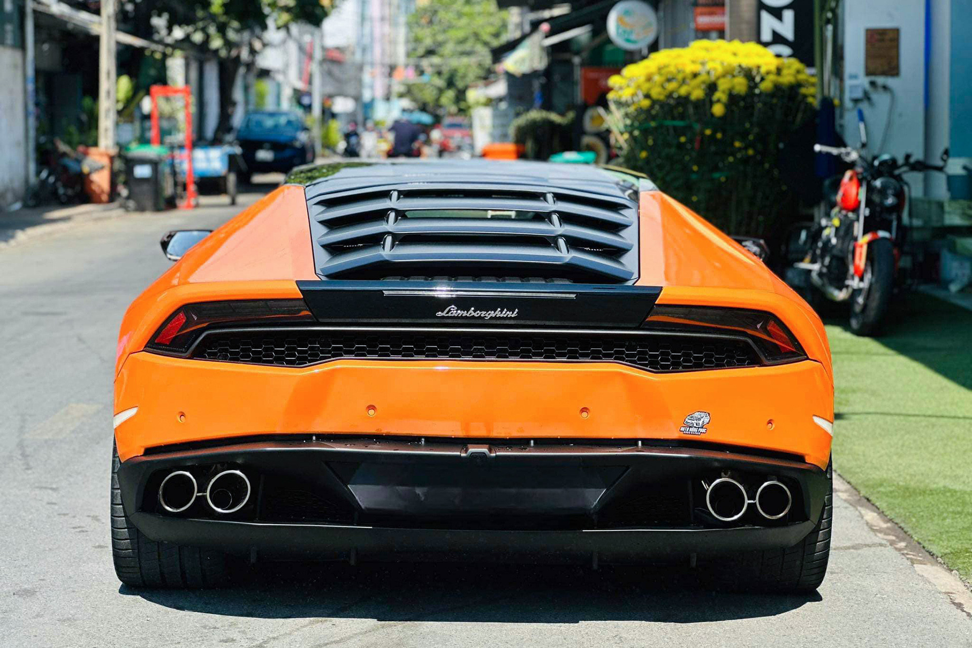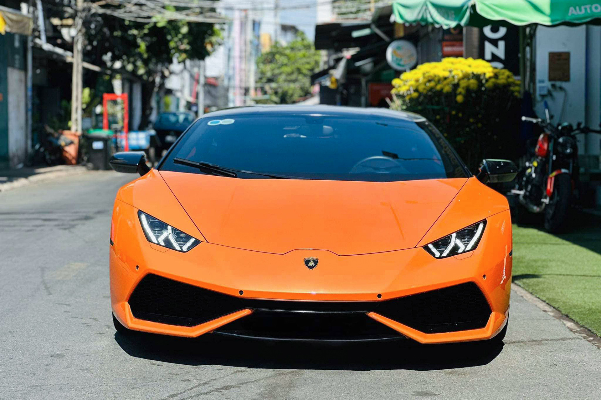 Ngoài chiếc siêu xe Lamborghini Huracan LP610-4 biển số tứ quý trên, tại Cần Thơ, còn có chiếc Lamborghini Huracan LP610-4 màu độc khác mang biển "sảnh tiến" 65A-345.67 của ông chủ chuỗi cửa hàng massage nổi tiếng.