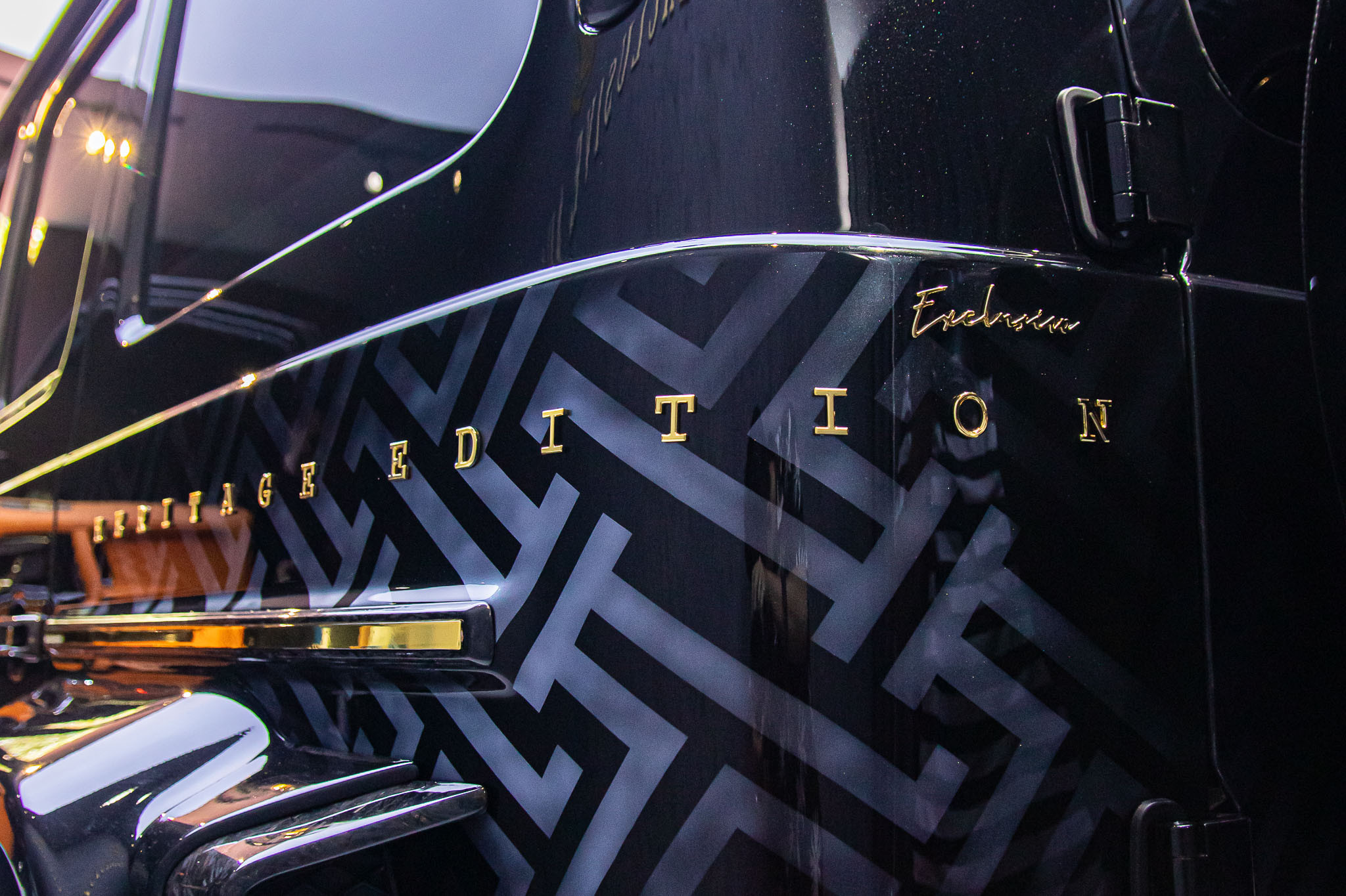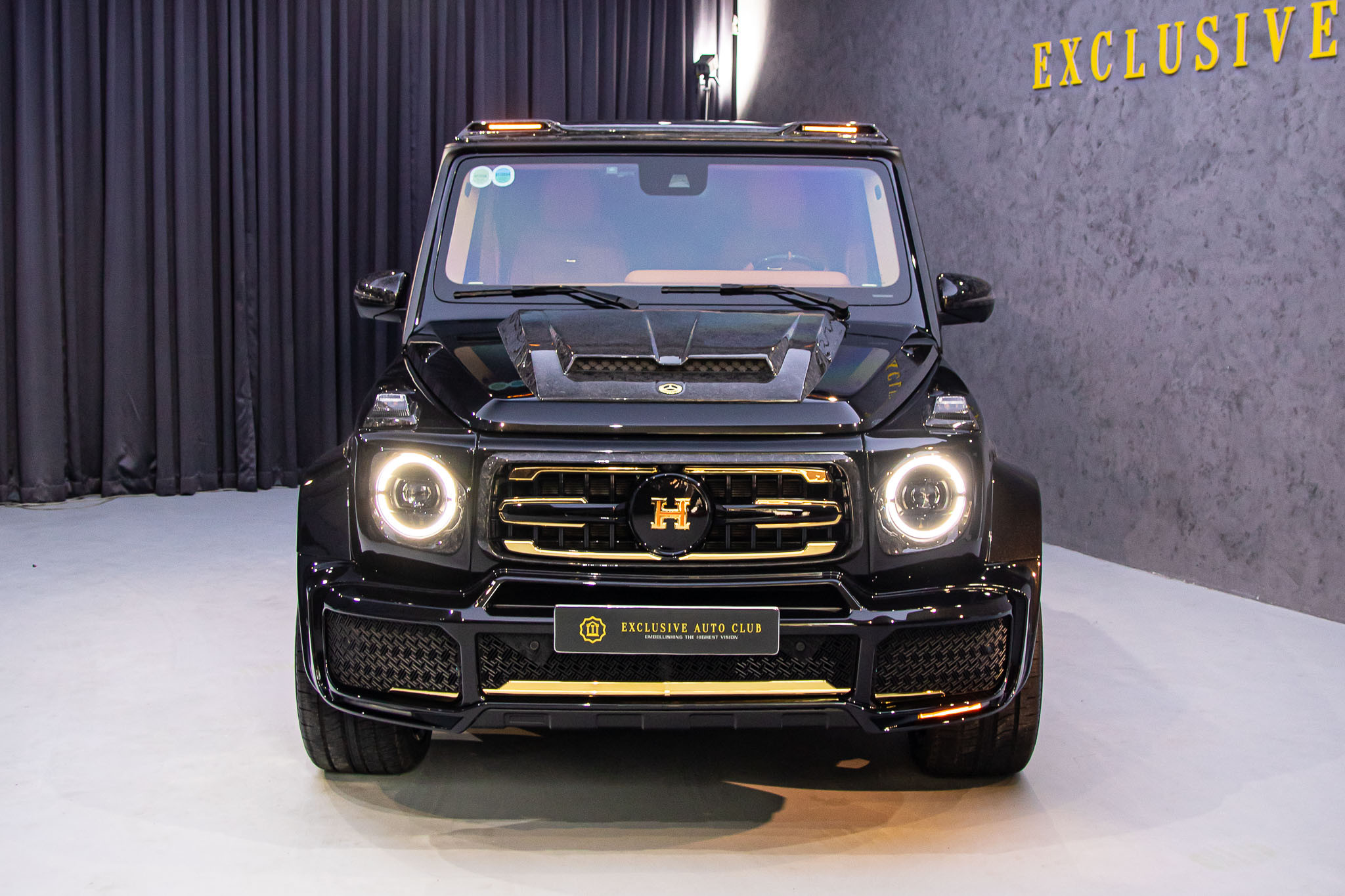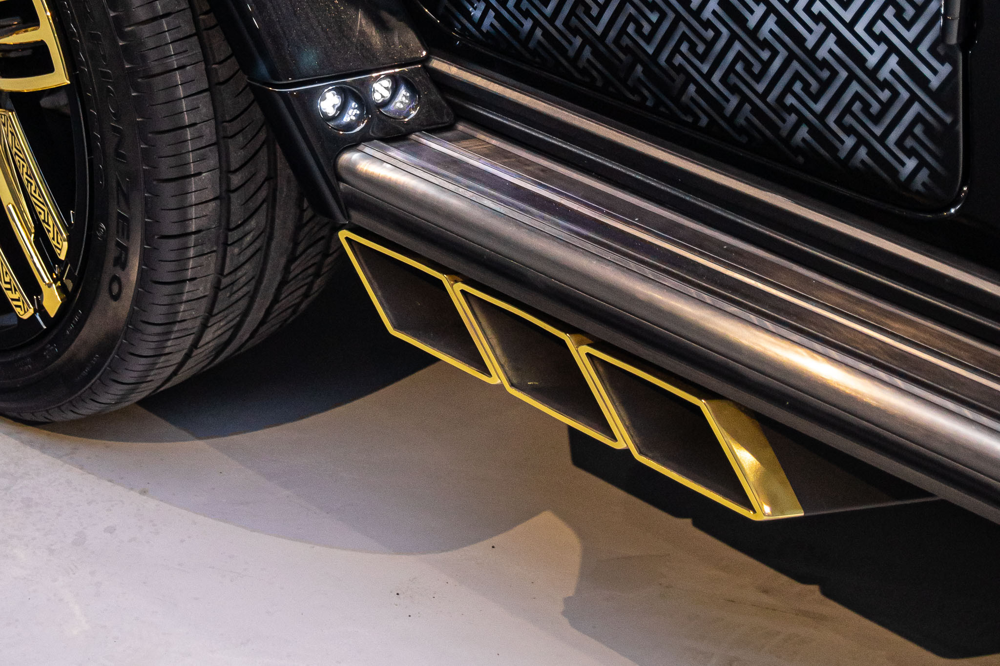 Gói độ mạ vàng trên chiếc SUV hạng sang này có tên gọi Mercedes GX63 Heritage Edition., trong đó từ “X” mang ý nghĩa “Exclusive”.