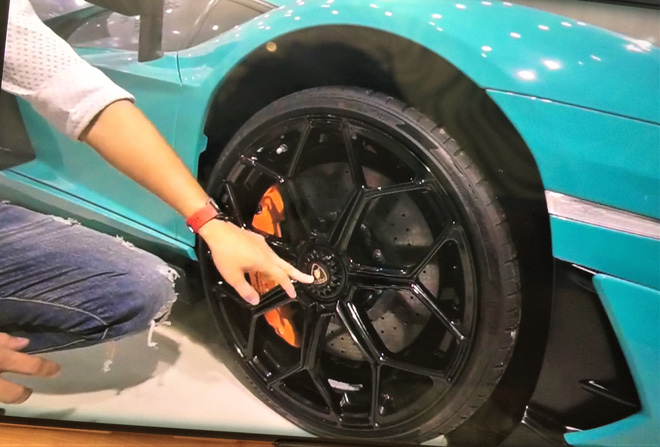 Chủ chiếc siêu xe cho hay, phần đầu xe có chút khác biệt như cản trước, có thêm cánh gió để tăng thêm tính khí động học. Vành xe không giống như thông thường, có 5 con ốc để khóa vành và trục bánh xe mà chỉ có 1 center lock giống với xe đua.