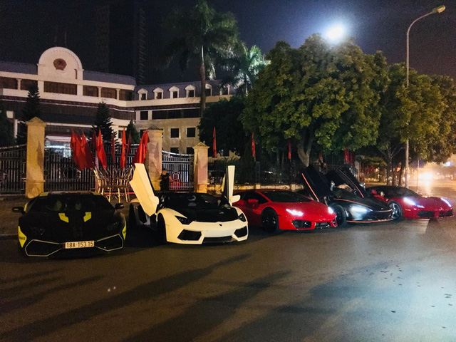 Đây được coi là team "Car Passion Hà Nội" với sự góp mặt của những mẫu xe quen thuộc nhất miền Bắc. Việc tập hợp những siêu xe này được vị đại gia đồng hồ gọi là "Hà Nội - Những đêm làm bà con khó ngủ" dù thiếu đi 1 thành viên do có việc riêng. Nổi bật trong số này là chiếc Lamborghini Aventador Roadster (màu trắng) được xem là độ “khủng” nhất Việt Nam hiện tại. Xe đã được trang bị gói độ carbon của hãng Novitec danh tiếng. Ngoài ra, xe còn được độ thêm bộ mâm từ ANRKY Wheels có giá khoảng 13.000 USD. Siêu bò cũng từng tham gia hành trình Car Passion vào giữa tháng 6 năm nay.