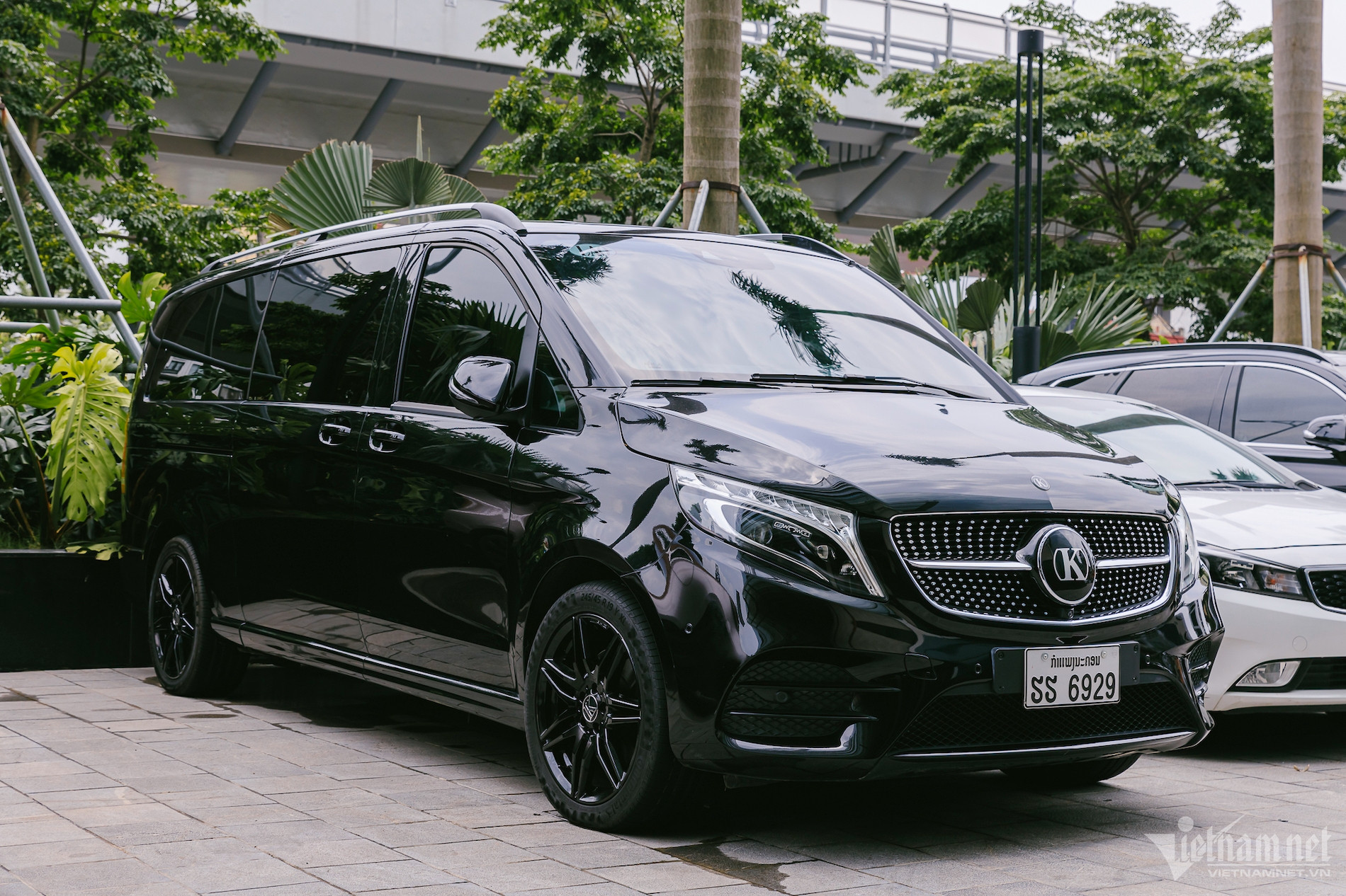 Chiếc Mercedes V-Class trong dàn xe này cũng là mẫu xe đặc biệt khi được hãng Klassen độ theo yêu cầu cá nhân hóa của đại gia 8x. Theo tìm hiểu, các chi tiết độ tập trung ở bên trong nội thất như khoang cabin ốp carbon, viết tắt tên chủ xe tại tựa đầu 4 ghế… Đồng thời, 6 chỗ ngồi của xe được bố trí lại như trên Maybach S650 Pullman, gần như toàn bộ khoang sau được độ lại dành cho 2 ghế ngồi siêu sang, trần xe bổ sung đèn chiếu sáng có thể thay đổi các chế độ và ngăn chia giống Maybach 62S.