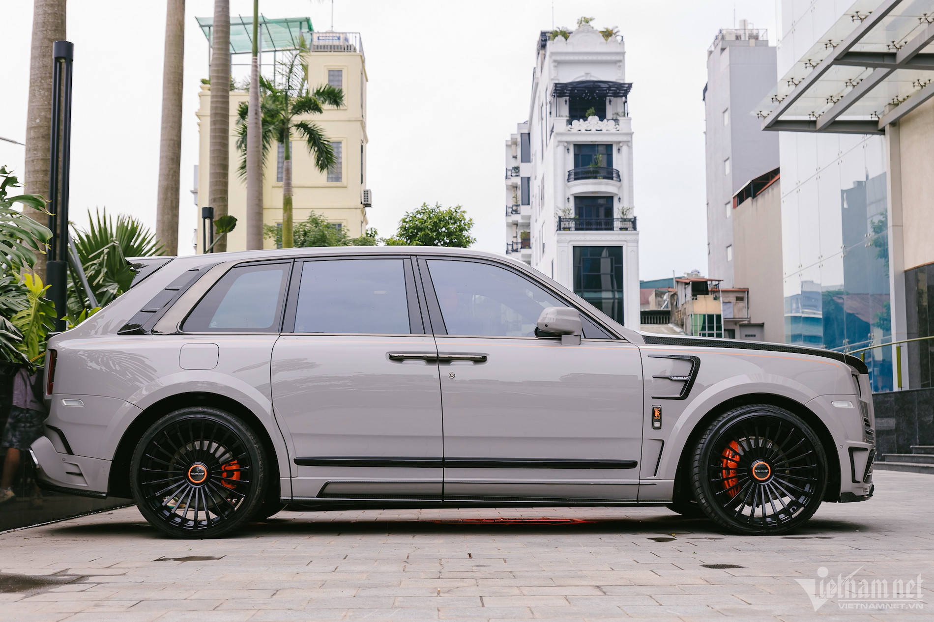 Rolls-Royce Cullinan là mẫu xe có số lượng nhiều nhất trong dàn xe với 3 chiếc góp mặt. Đáng chú ý hơn cả, một chiếc Cullinan trong số này là bản nâng cấp gói độ Mansory, do thi công bới chính các kỹ sư của nhà máy chính hãng tại thị trấn Brand (Đức). Chiếc xe được nhập khẩu thông qua đơn vị tư nhân vào năm 2022, thuộc phiên bản Black Badge và mang màu sơn xám với tên gọi Tempest Grey.