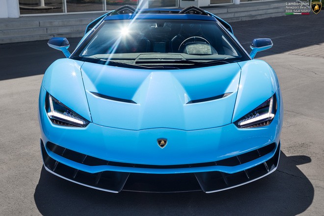Lamborghini Centenario Roadster LP770-4 vốn chỉ được hãng siêu xe nước Ý sản xuất 20 chiếc trên toàn thế giới. Chiếc xe dự kiến về Việt Nam được sơn hai tông màu xanh dương ở ngoại thất khá độc đáo và thuộc diện độc nhất thế giới. Phần viền của các chi tiết carbon như cản trước, ốp hông, khuếch tản gió phía sau được sơn màu trắng nhằm tạo thêm điểm nhấn cho ngoại thất. Xe sử dụng bộ vành 5 chấu đơn có thiết kế giống như cánh quạt, điều này giúp tăng khả năng làm mát cho hệ thống phanh.
