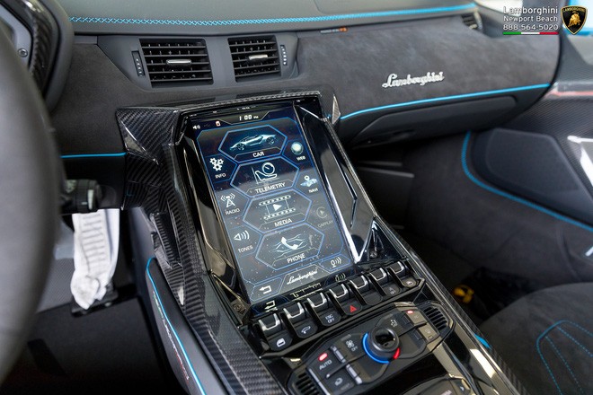 Một trong những điểm khác biệt rõ rệt nhất trên mẫu Centenario so với các xe Lamborghini khác là được bố trí một màn hình cảm ứng kích thước lớn ở bệ trung tâm để tích hợp các chức năng giải trí và hệ thống điều hòa.