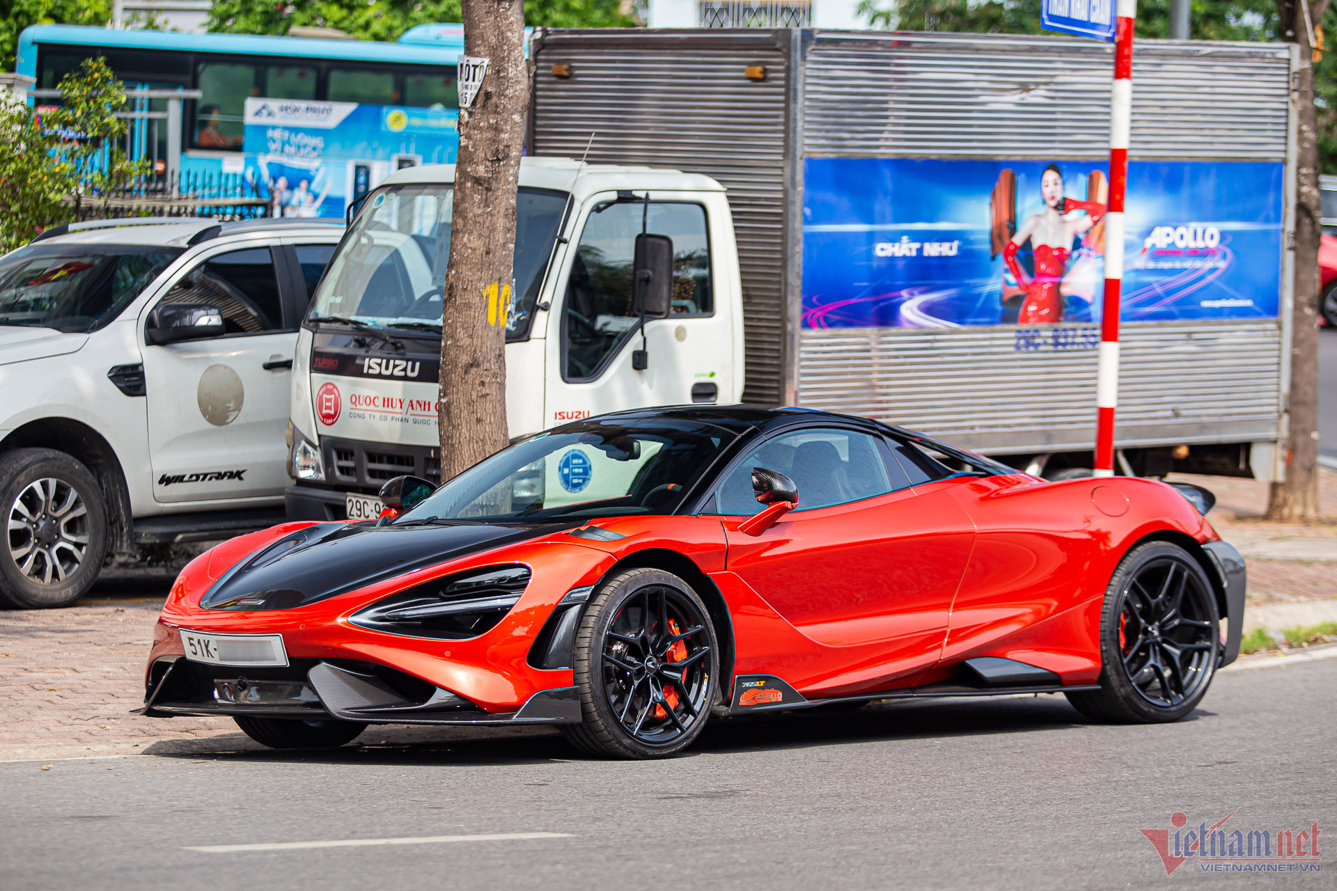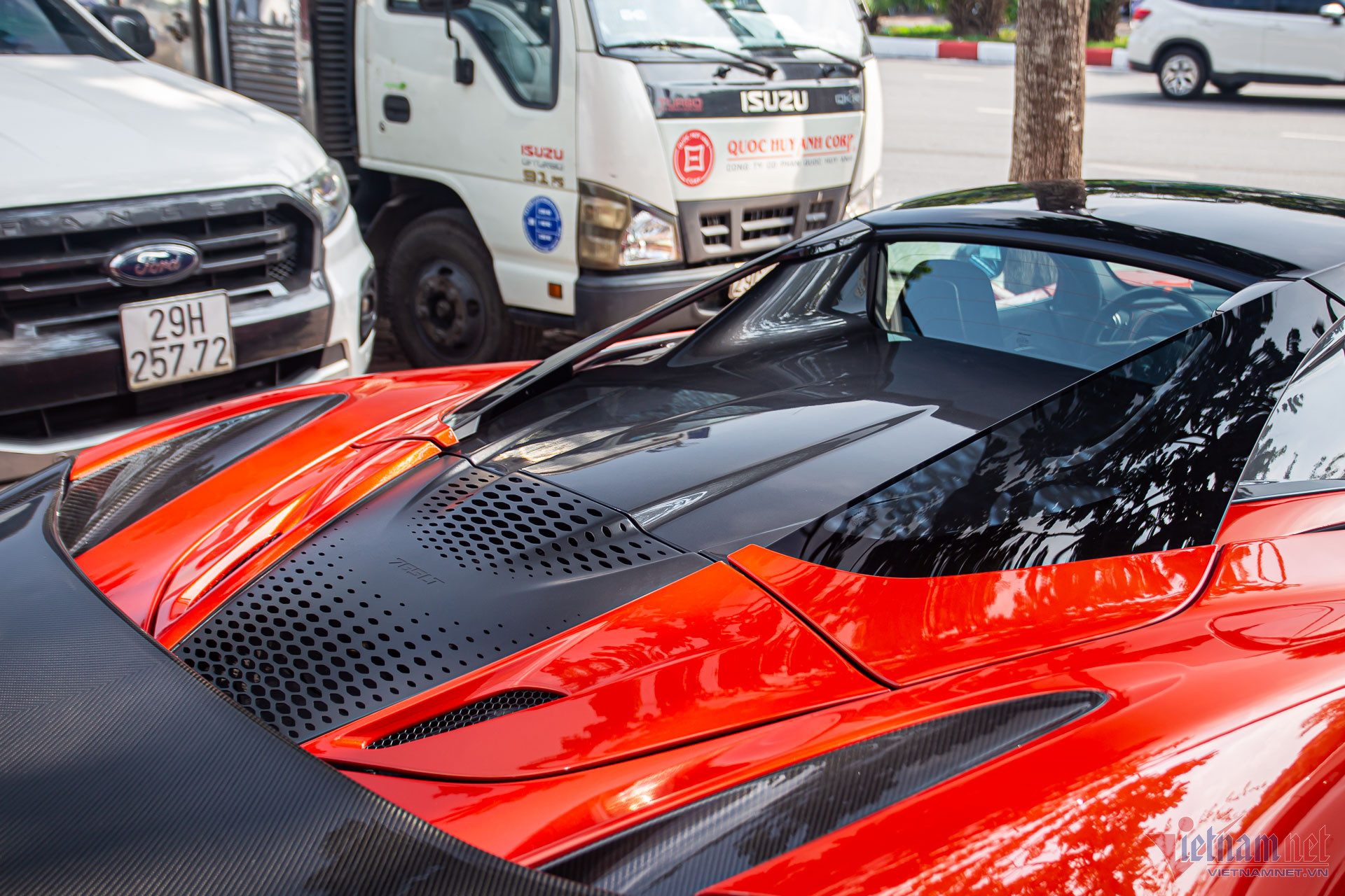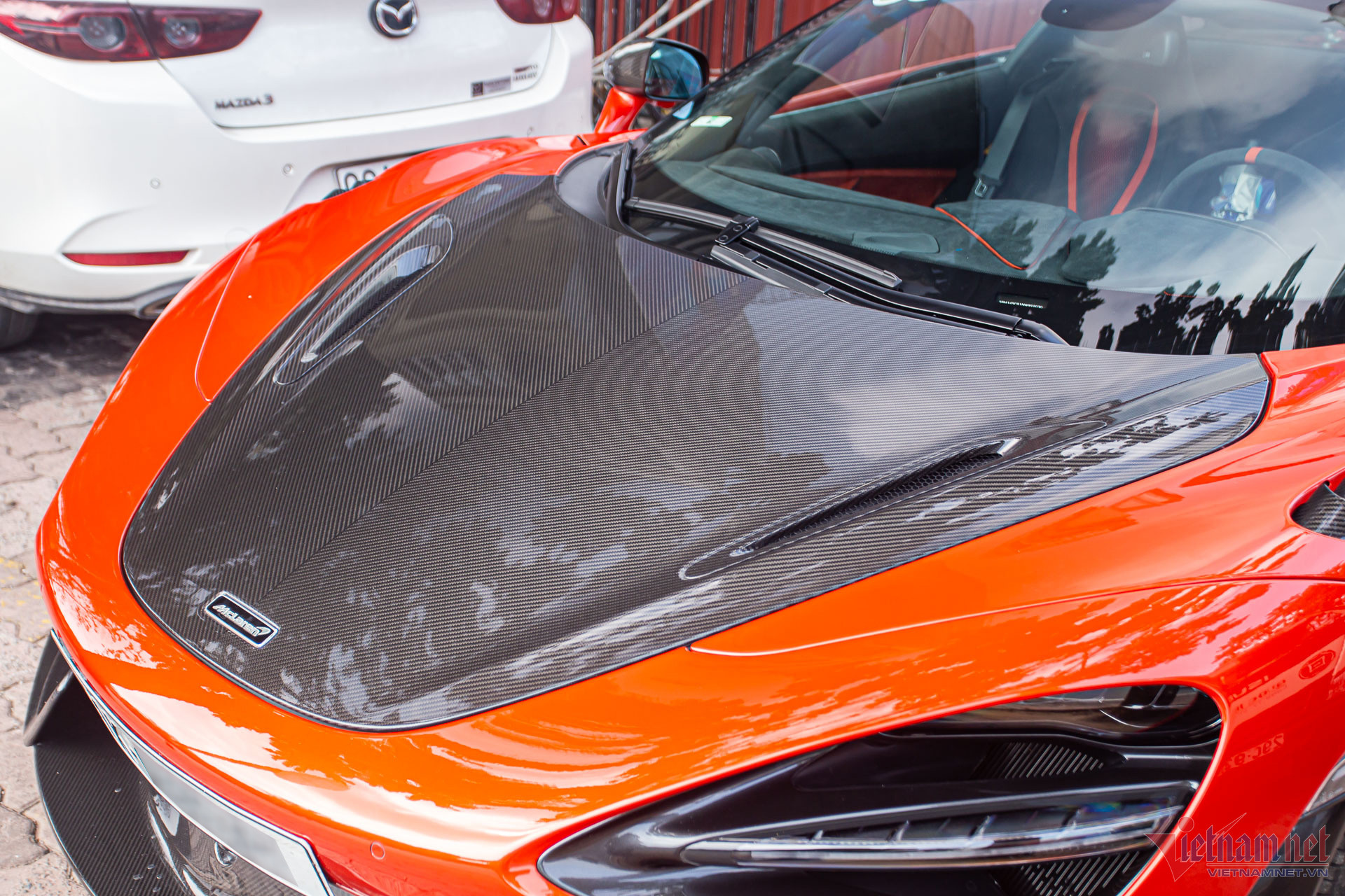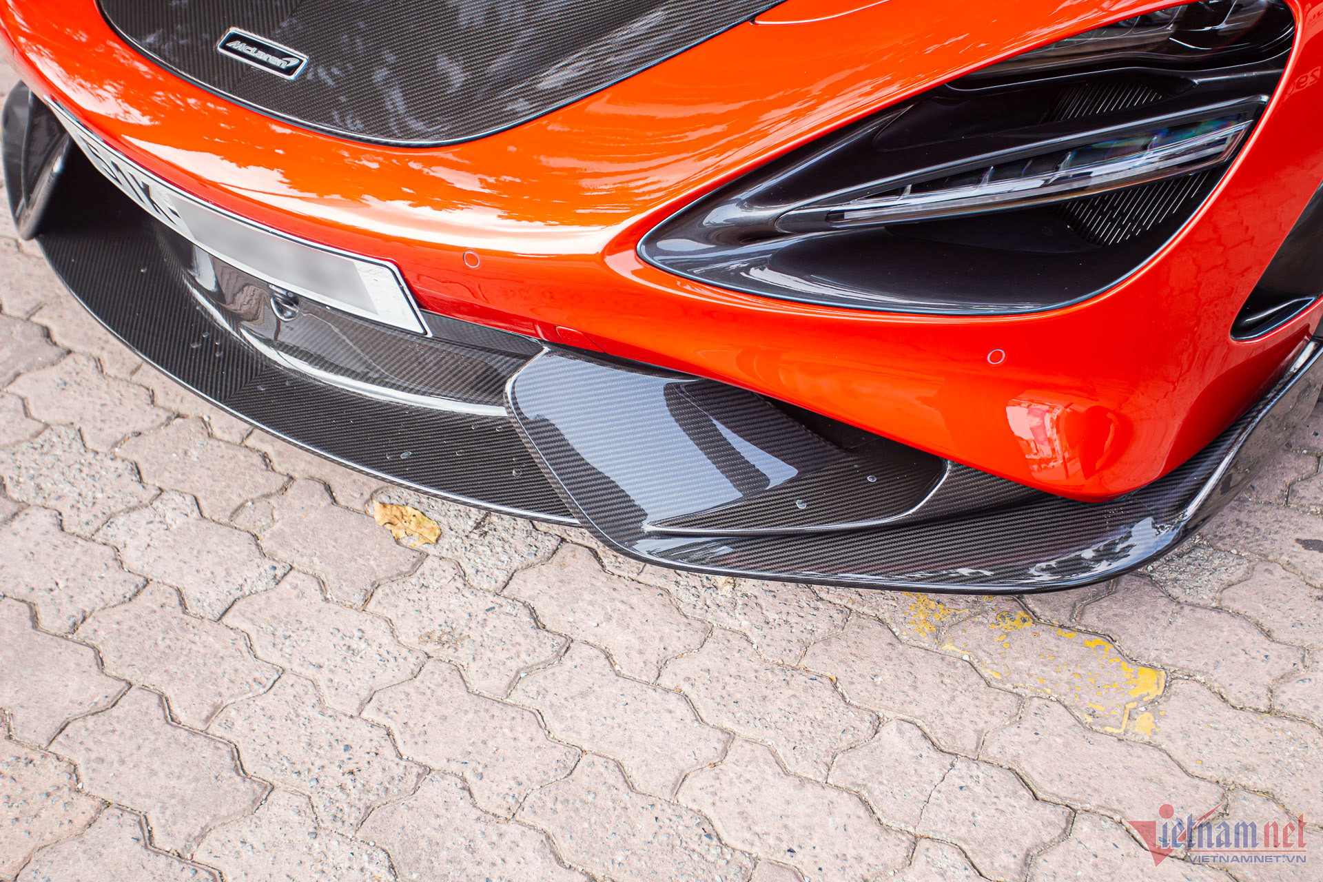 Ngoại thất xe sơn màu cam đỏ lạ mắt, đi kèm nhiều chi tiết làm bằng sợi carbon do bộ phận cá nhân hóa MSO (McLaren Special Operations) sản xuất, bao gồm nắp ca-pô, cánh gió đuôi xe, bộ khuếch tán, cản sau, ốp gương chiếu hậu, ốp hốc gió và bộ chia gió cản trước.