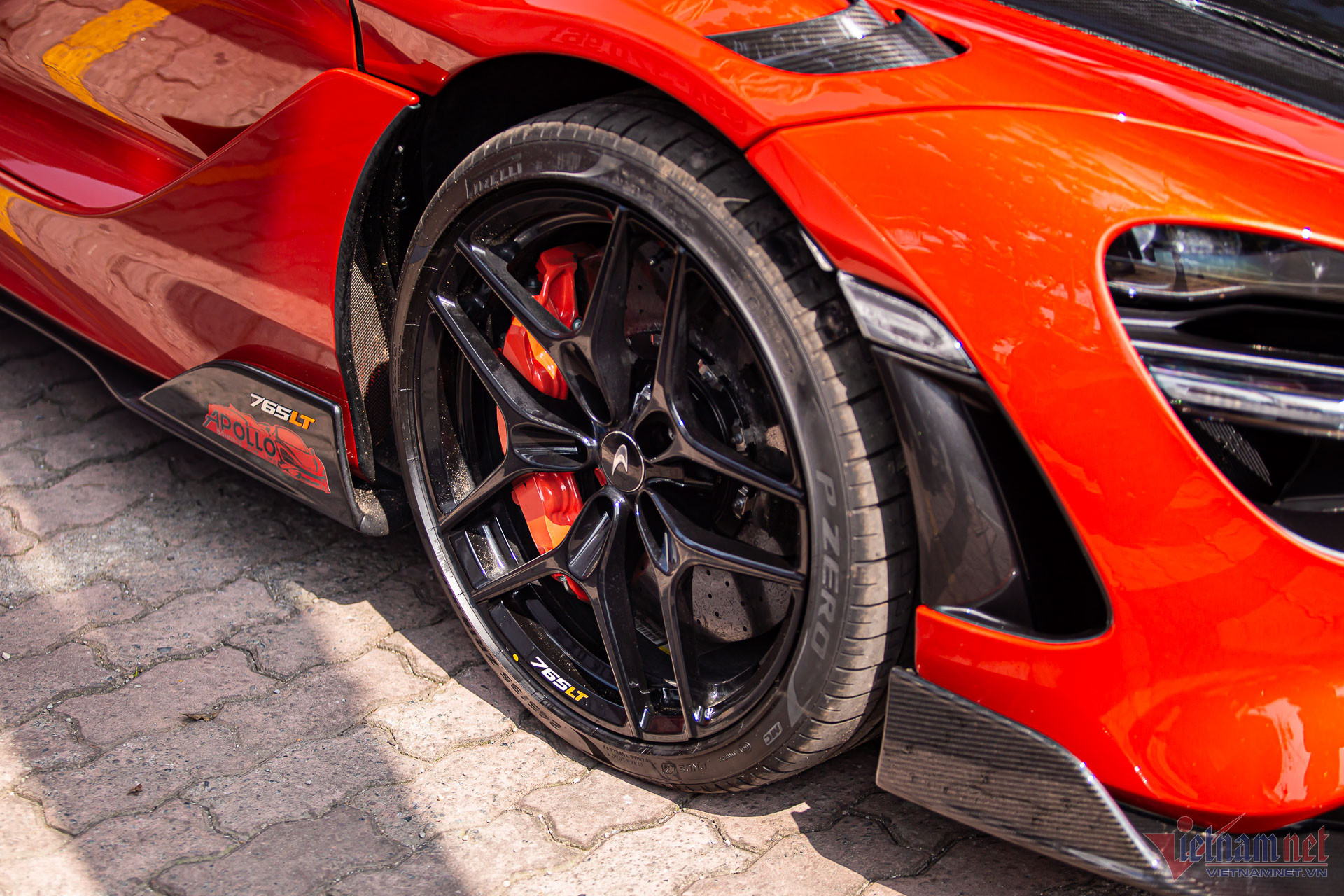 Bộ mâm xe mang thiết kế khác hoàn toàn 4 chiếc 765LT bản Coupe (mui cứng) đã về Việt Nam, với cấu trúc 5 chấu dạng chữ Y đơn giản và sơn đen. Bên trong nổi bật với cùm phanh màu cam, tạo nên phong cách “tông xuyệt tông” cho xe.
