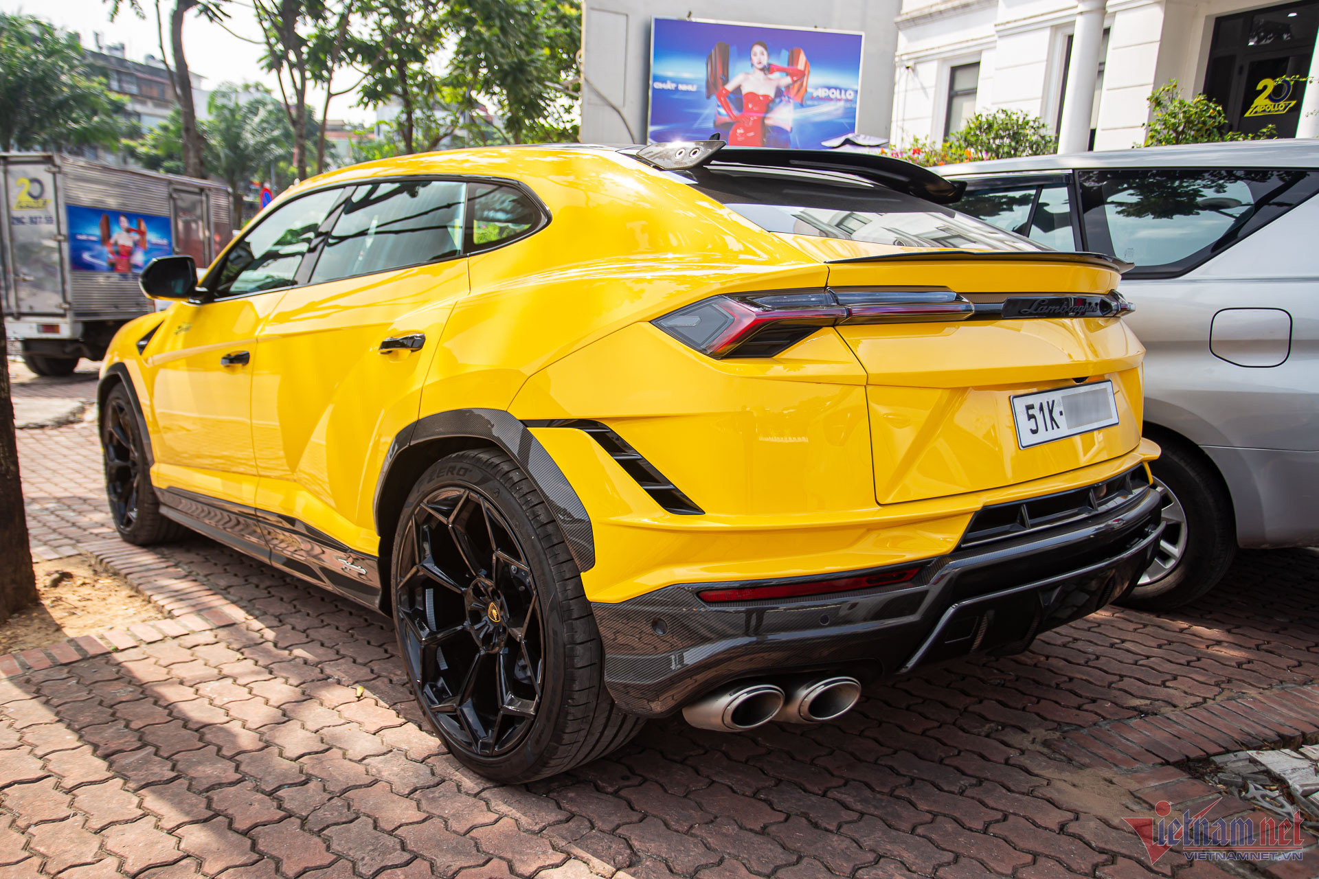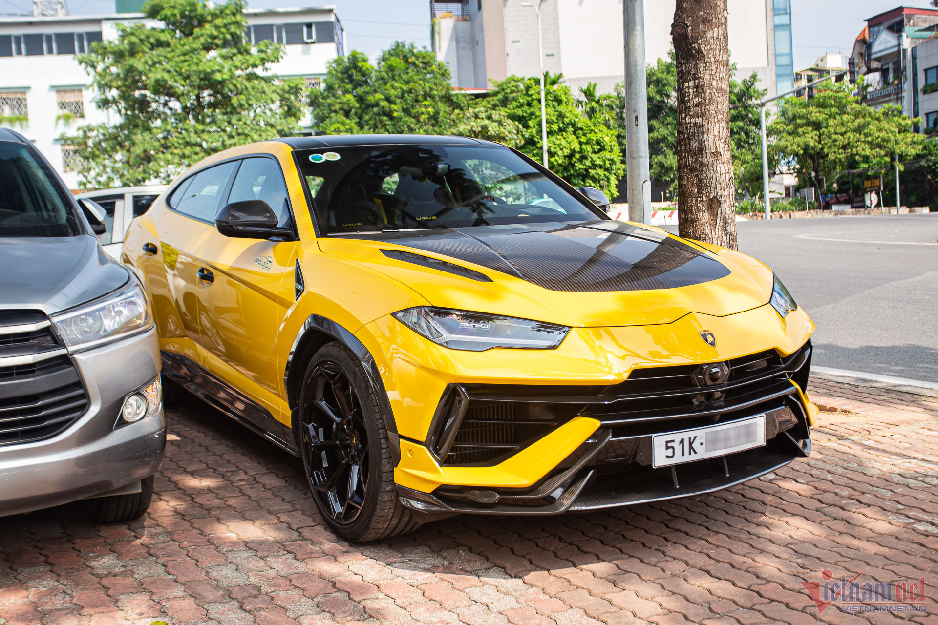 Chiếc xe còn lại của vị đại gia Sài Gòn là Lamborghini Urus Performante, cùng nhập khẩu bởi đơn vị phân phối chiếc McLaren. Ngoại thất xe nổi bật không kém nhờ nước sơn màu vàng đặc trưng của dòng siêu SUV này.
