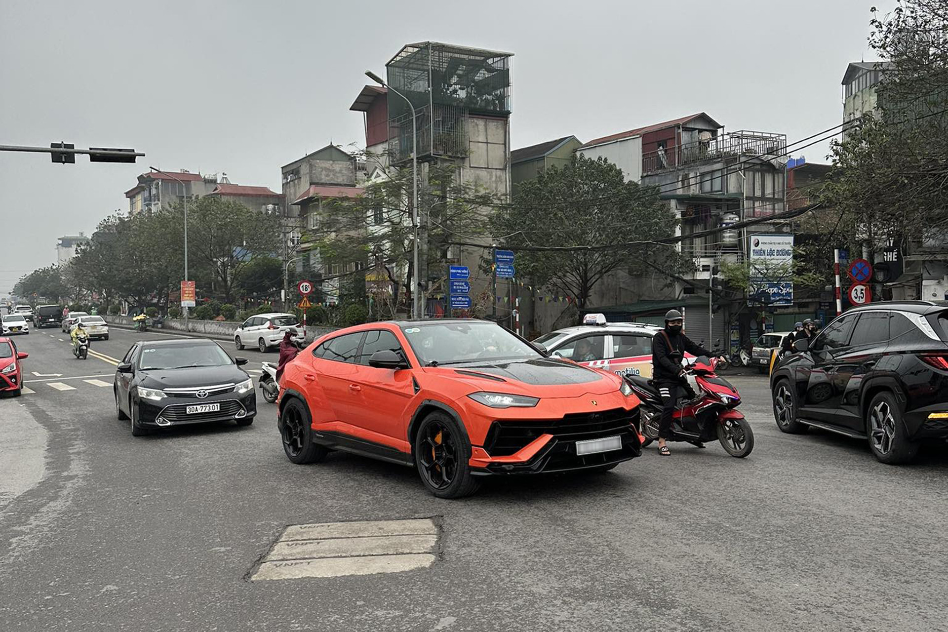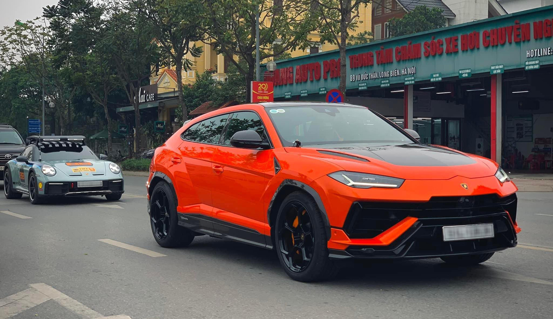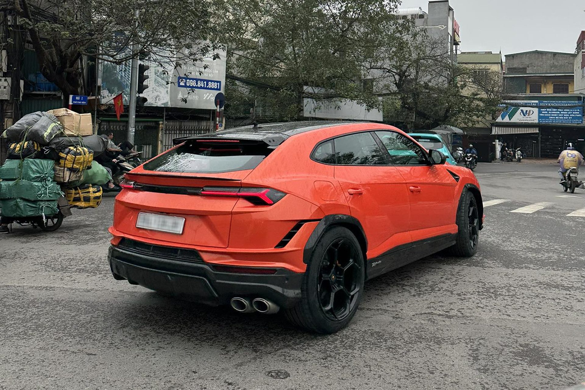 Chiếc siêu SUV Lamborghini Urus Performante trong đoàn của đại gia Sài Gòn đặc biệt không kém, khi xe sở hữu nước sơn màu cam có tên gọi Arancio Xanto. Xe sử dụng bộ mâm 5 chấu dạng chữ Y, kích thước 22 inch và hoàn thiện bằng màu đen bóng.