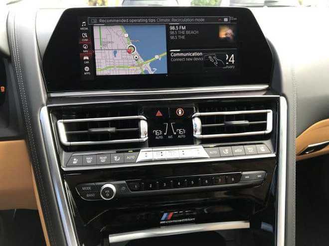 Không giống một số dòng xe mới khác của BMW, dòng 8-Series với bản M8 sử dụng lưới tản nhiệt quả thận cỡ vừa chứ không quá to bản. Điểm khác biệt của M8 so với các bản khác là bộ bodykit M. Cụm đèn chiếu sáng chính Adaptive LED. Đèn hậu thanh mảnh có thiết kế tương tự một số mẫu BMW khác như 3-Series hay X6. Bộ vành đa chấu cách điệu thời trang kích thước 20 inch, kết hợp lốp Pirelli. Phiên bản dành cho thị trường Mỹ nên có đèn phản quang màu cam ở hông.