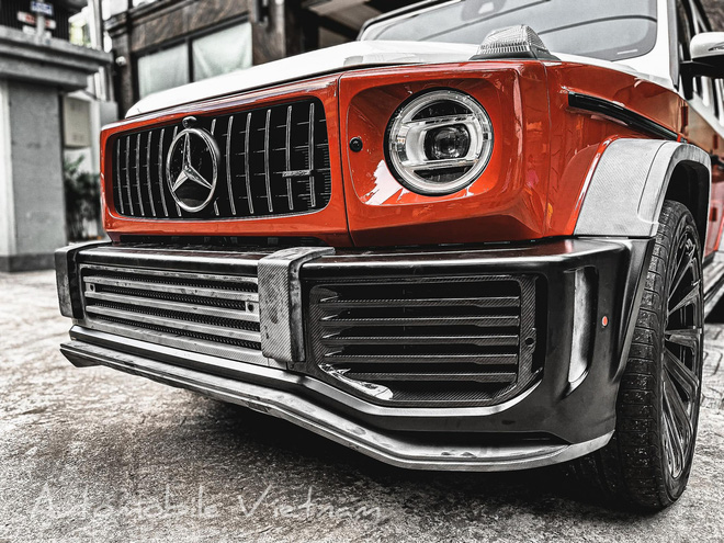 Chiếc Mercedes-AMG G 63 trong bài viết được nâng cấp gói độ Urban 700S mang đến những chi tiết mới bao gồm phần cản trước/sau được thiết kế lại lớn hơn so với nguyên bản. Vòm bánh xe được mở rộng, gia tăng chiều rộng của xe thêm 50 mm, cánh gió lướt gió phía sau cùng hệ thống đèn LED được gắn trên nóc xe, ốp gương và ốp bánh dự phòng phía sau. Tất cả những chi tiết này được làm từ sợi carbon trọng lượng nhẹ và siêu bền.