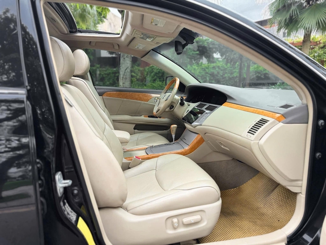 Bên trong nội thất, chiếc Toyota Avalon rao bán sử dụng tông màu be chủ đạo, điểm xuyết là các mảng ốp gỗ sáng màu. Sau 18 năm xuất xưởng, tình trạng ở mức khá, ghế ngồi vẫn giữ được độ sáng nhưng đã xuất hiện những vết nhăn, đây cũng là điều khó tránh khỏi.