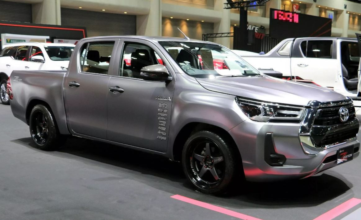 Bên cạnh những chiếc Hilux mang phong cách hầm hố, Toyota còn trưng bày bộ ba độ gầm thấp tập trung vào việc làm cho Hilux trông thể thao hơn.