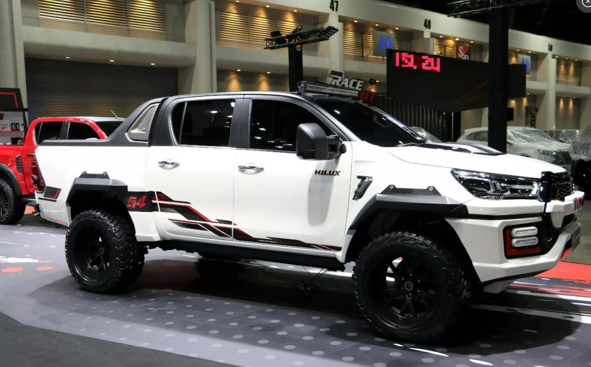 Chiếc xe trông "hoang dã" nhất trong gian hàng của Toyota đó là Hilux Revo 54th, nhờ bộ bodykit thân rộng trông giống như một chiếc xe trong loạt phim Transformers.