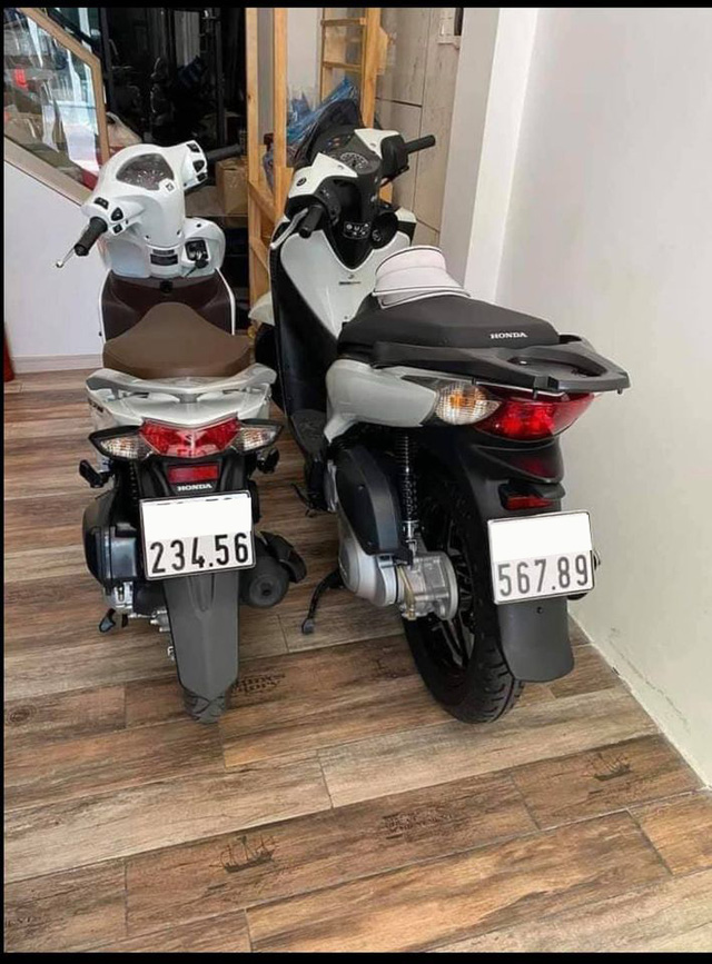 Cả 2 chiếc xe đều sở hữu biển kiểm soát thuộc TP. Hồ Chí Minh. Đầu tiên là chiếc Honda SH 150i SM 109 (bản nhập Ý) được đăng ký lần đầu vào năm 2016. Chủ nhân cho biết xe mới chỉ chạy được vài trăm km. Chiếc SH đeo trên mình biển số tiếp tiến 567.89 khiến nhiều người ao ước.
