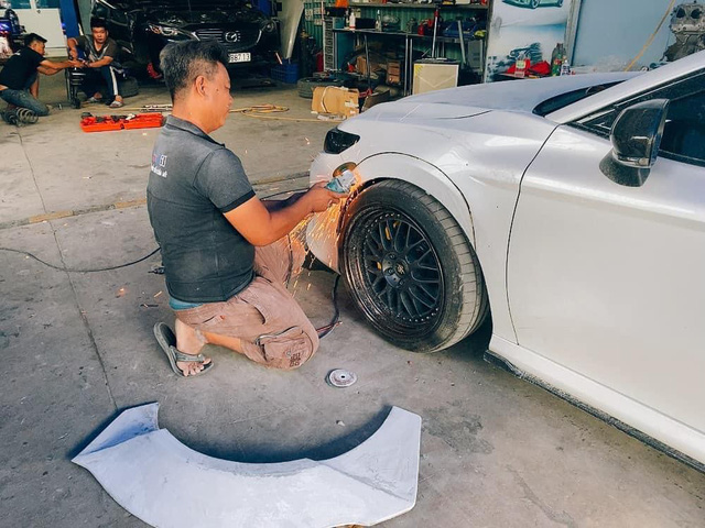 Theo chia sẻ của chủ nhân chiếc Camry, anh cùng một xưởng độ đã mất hơn 1 năm trời để lên ý tưởng và thiết kế. Trong đó công đoạn lắp lên thân xe mất tới 20 ngày bởi các kỹ thuật viên tại xưởng độ phải cắt bớt vòm bánh xe nguyên bản, tạo thêm không gian để đặt những tấm nới rộng vòm bánh xe, cách làm này cũng giống với nhiều mẫu siêu xe độ Liberty Walk tại Việt Nam.