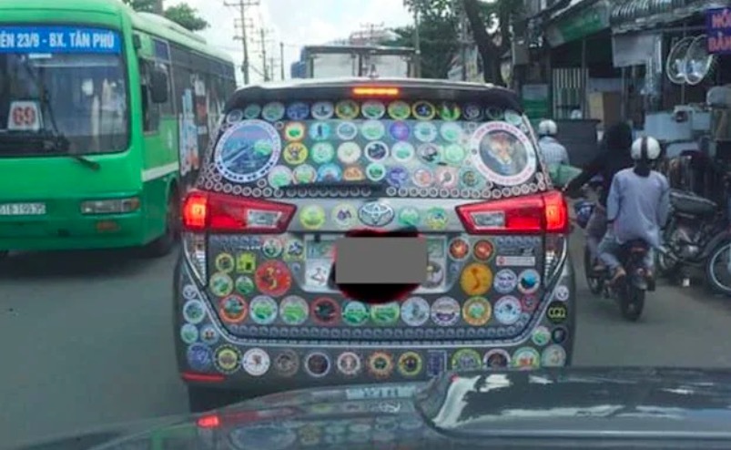 Tuy vậy, không ít tài xế đã quá lạm dụng việc này và biến chiếc xe của mình thành một “rừng” decal di động. Một số hình ảnh xe ô tô chi chít những decal và logo hội nhóm trên thân xe, kính sau, thậm chí cả lên kính lái phía trước xuất hiện trên mạng xã hội gần đây khiến chính cánh lái xe phải “lắc đầu”.