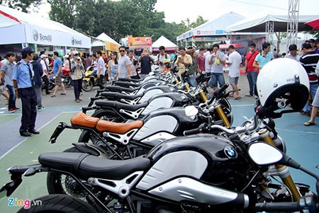 Sáng 16/8, những người mê nakedbike phong cách cổ điển BMW tập trung trước gian hàng của hãng tại |