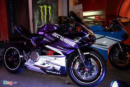 Cặp đôi Ducati 899 Panigale được dán decal độc đáo. Trong đó, bản 899 Panigale nguyên bản có giá 577 triệu đồng tại Việt Nam. |