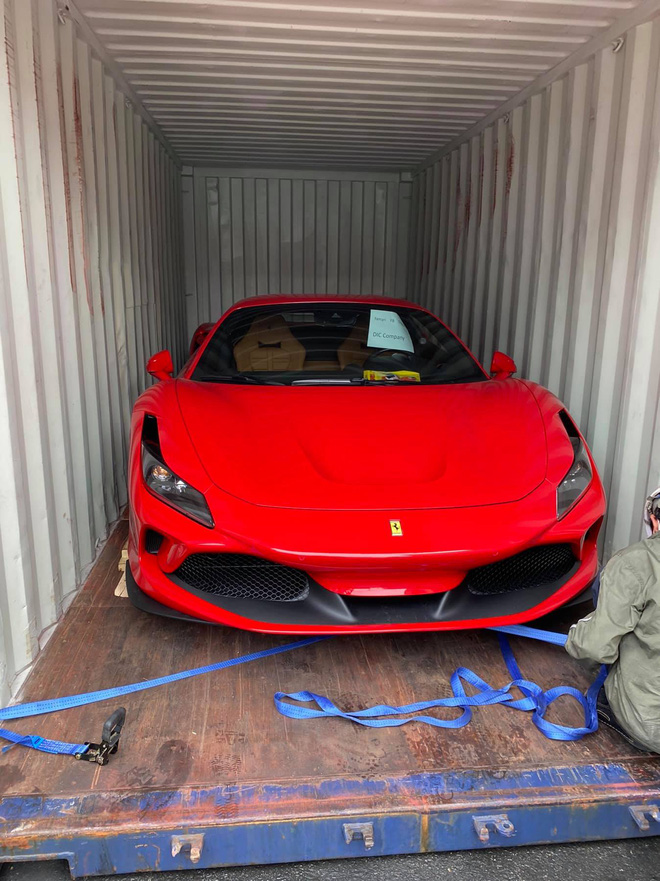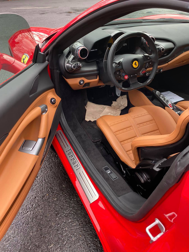 Kế bên cạnh là chiếc Ferrari F8 thứ 5 về Việt Nam với màu sơn đỏ ngoại thất (4 chiếc trước đó được chia đều thành hai biến thể mui cứng và mui trần). Xe sử dụng bộ vành 5 chấu kép màu bạc cùng cùm phanh đỏ. Bên trong xe được bọc da màu da bò, xuất hiện thêm chất liệu carbon ở vô-lăng, bệ trung tâm, ghế ngồi,...