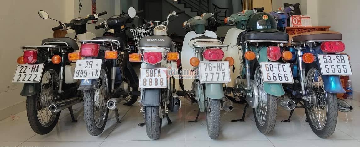 Anh Vũ cho biết bộ xe Cub của anh hiện có 6 chiếc, đều là xe biển số tứ quý đến từ nhiều tỉnh thành khác nhau và khó khăn lắm anh mới săn mua được.