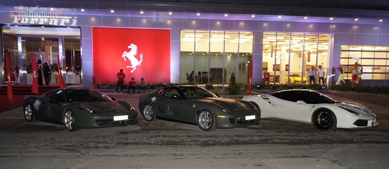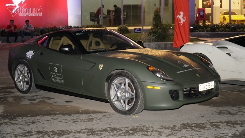 Bên cạnh Ferrari 458 Spider, 2 mẫu xe còn lại của ông Đặng Lê Nguyên Vũ góp mặt tại sự kiện là Ferrari 599 GTB và Ferrari 458 Italia được dán decal màu xanh quân đội cực chất.