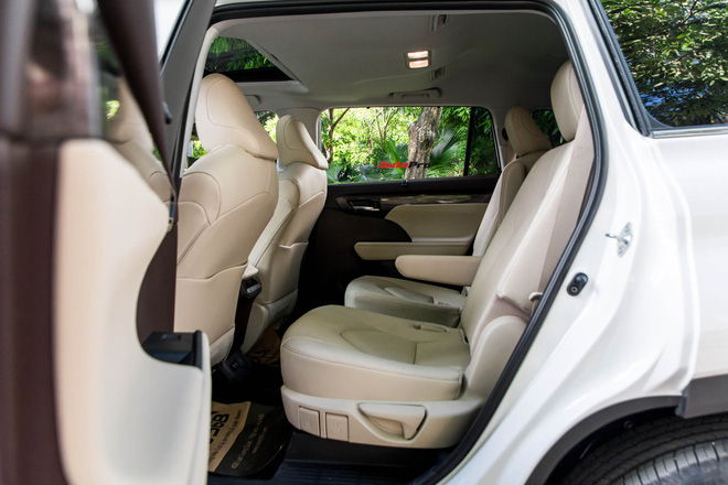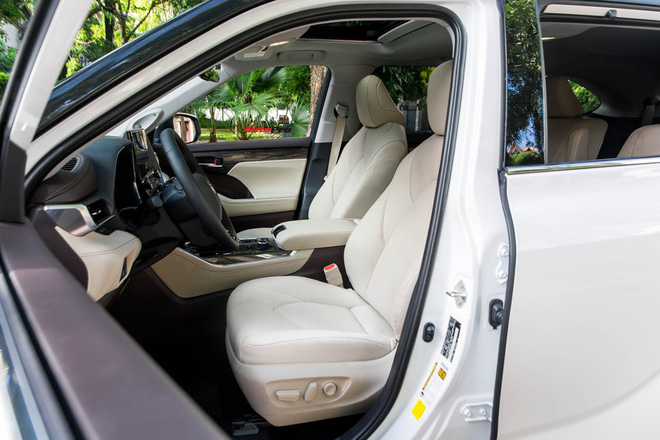 Bước vào bên trong nội thất, Toyota Highlander Limited được bọc hoàn toàn bằng chất liệu da với hai tông màu là nâu và be. Hàng ghế trước của xe được chỉnh điện, tích hợp cả chức năng sưới ấm và làm mát trong khi hai hàng còn lại chỉnh cơ. Vô-lăng của xe cũng chỉ được chỉnh tay thay vì điện.