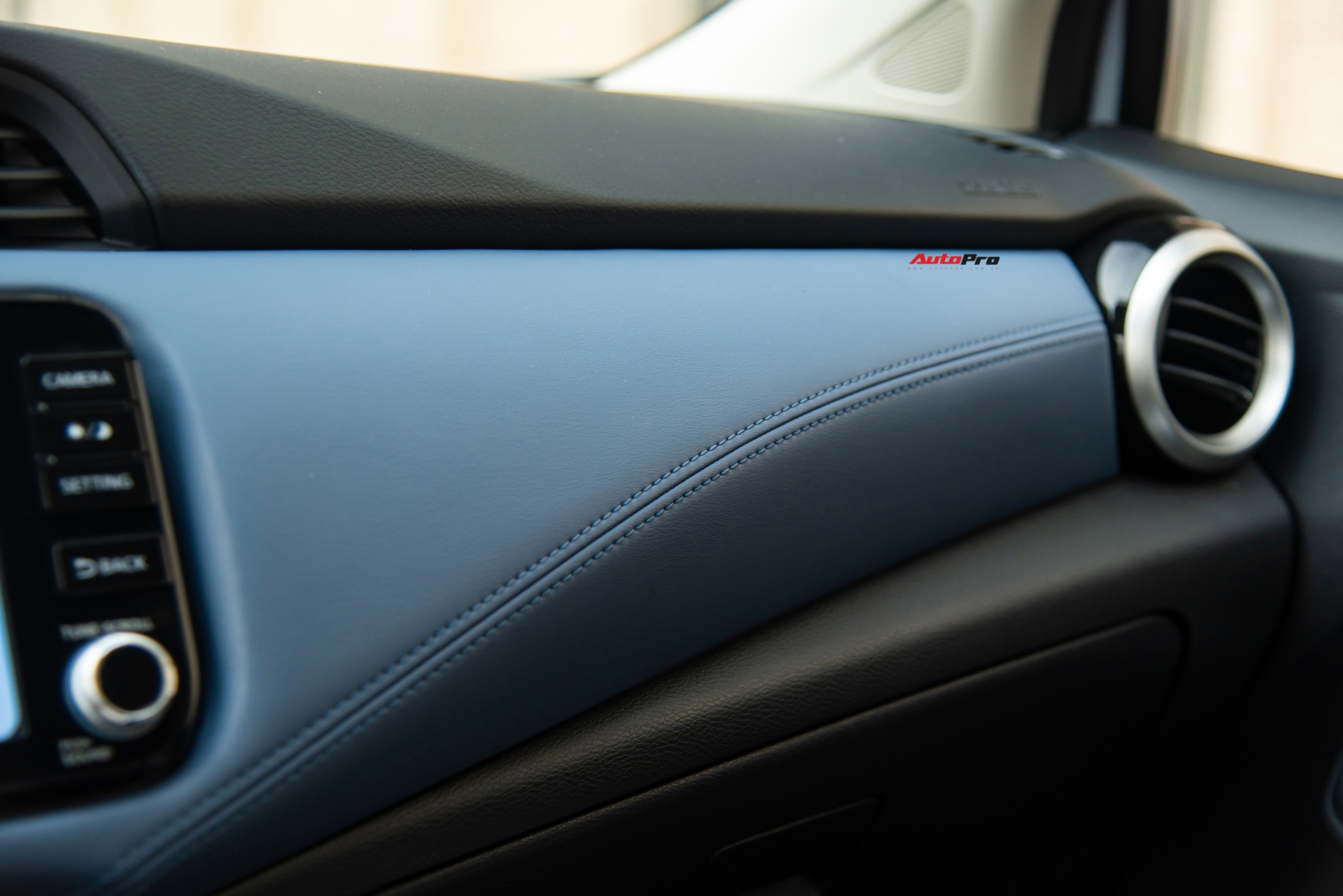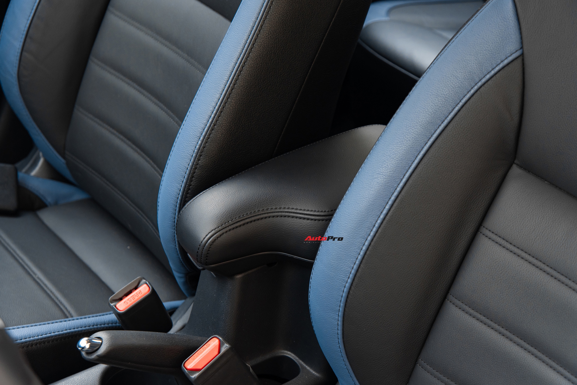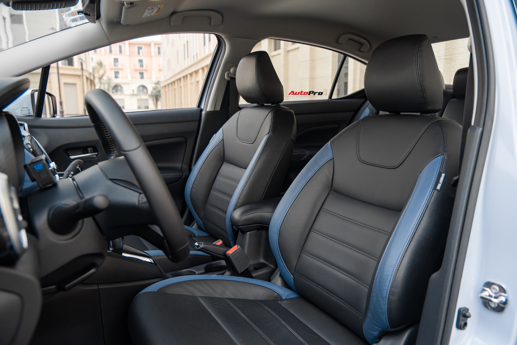 Ghế da được bọc hai tông màu đen-xanh dương khá cao cấp, cho cảm giác ngồi êm ái, hỗ trợ phần lưng người lái tốt. Chất liệu da còn xuất hiện khá nhiều ở táp-li cửa và trên bề mặt táp-lô giúp nâng tầm nội thất hơn so với các đối thủ trong phân khúc.