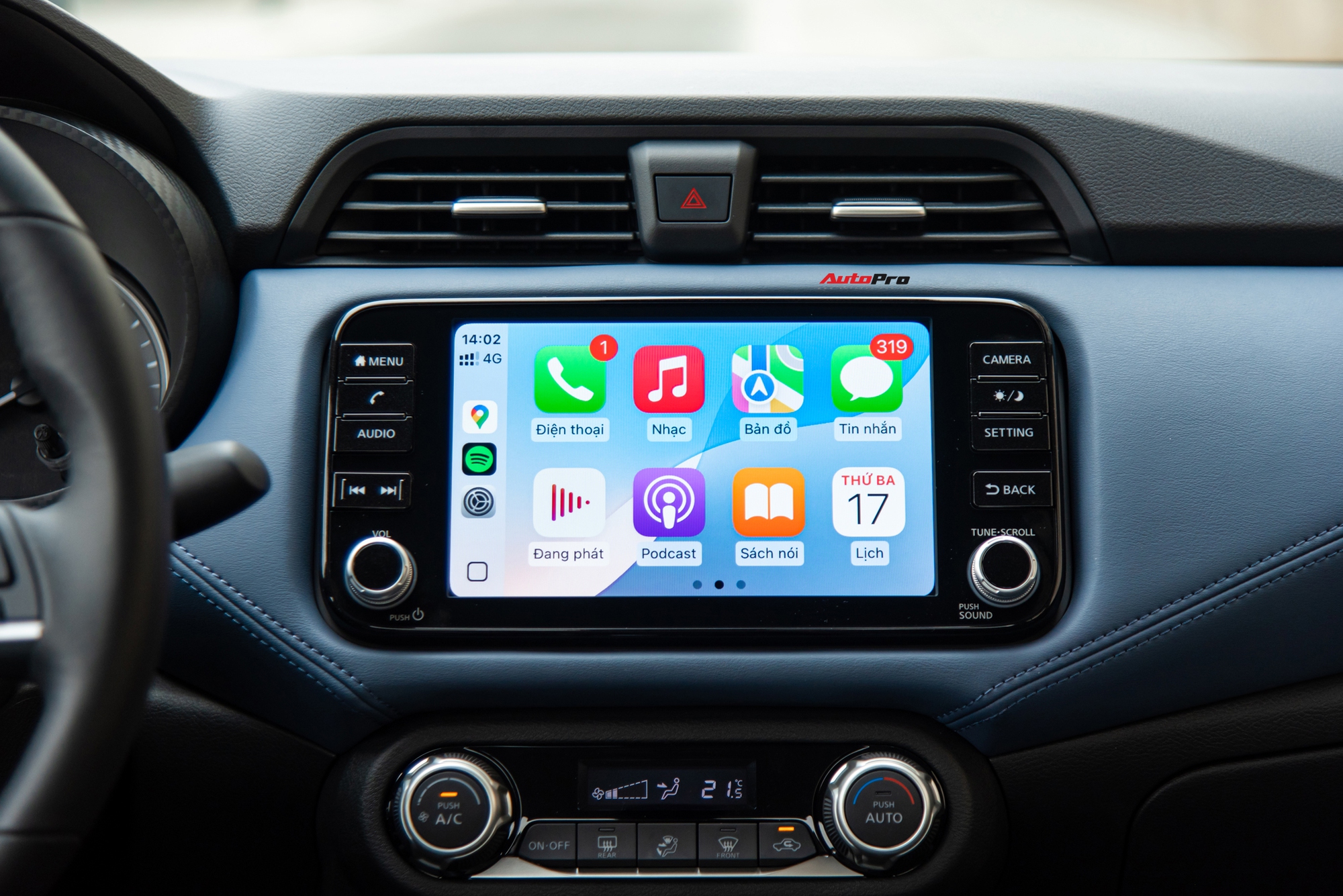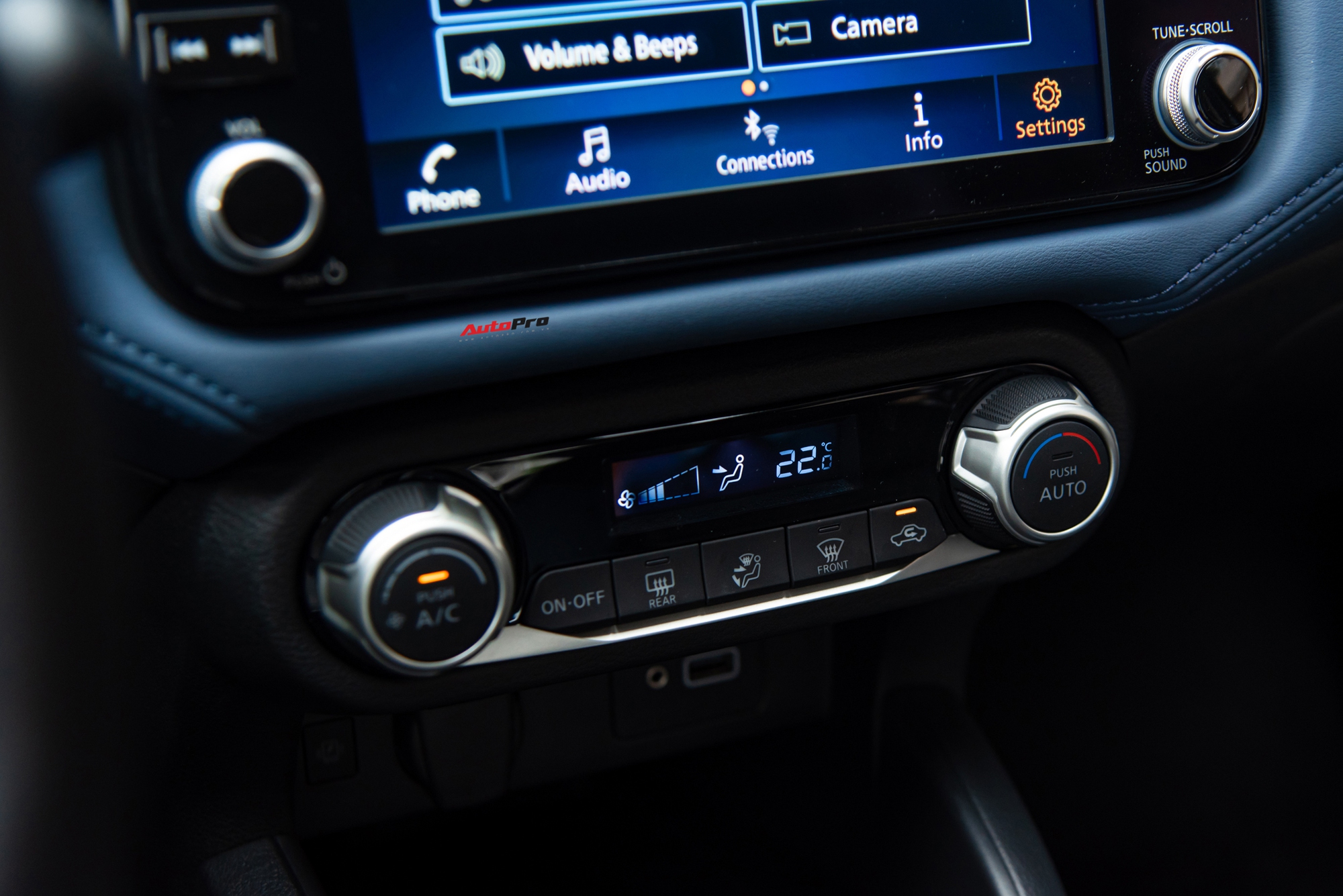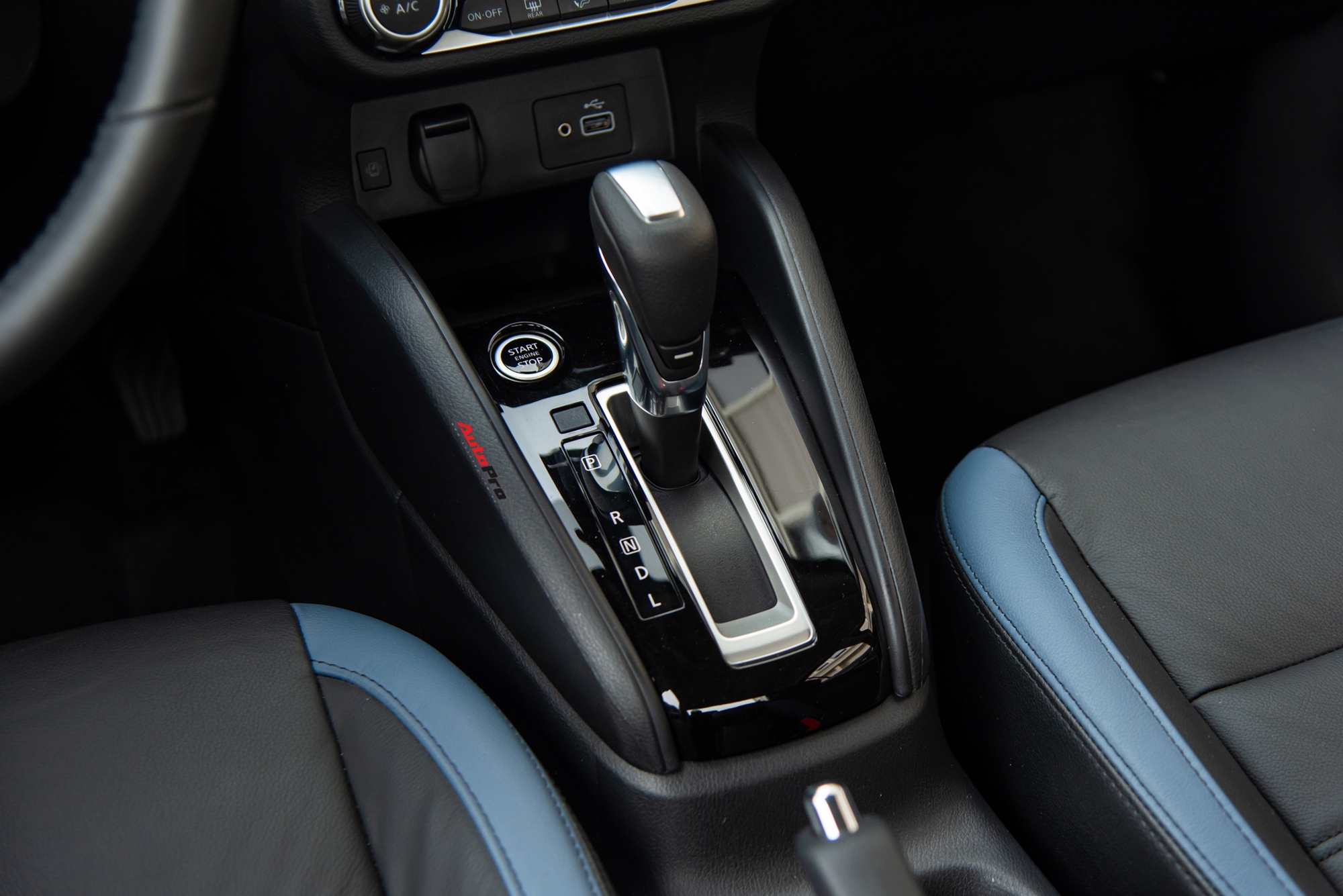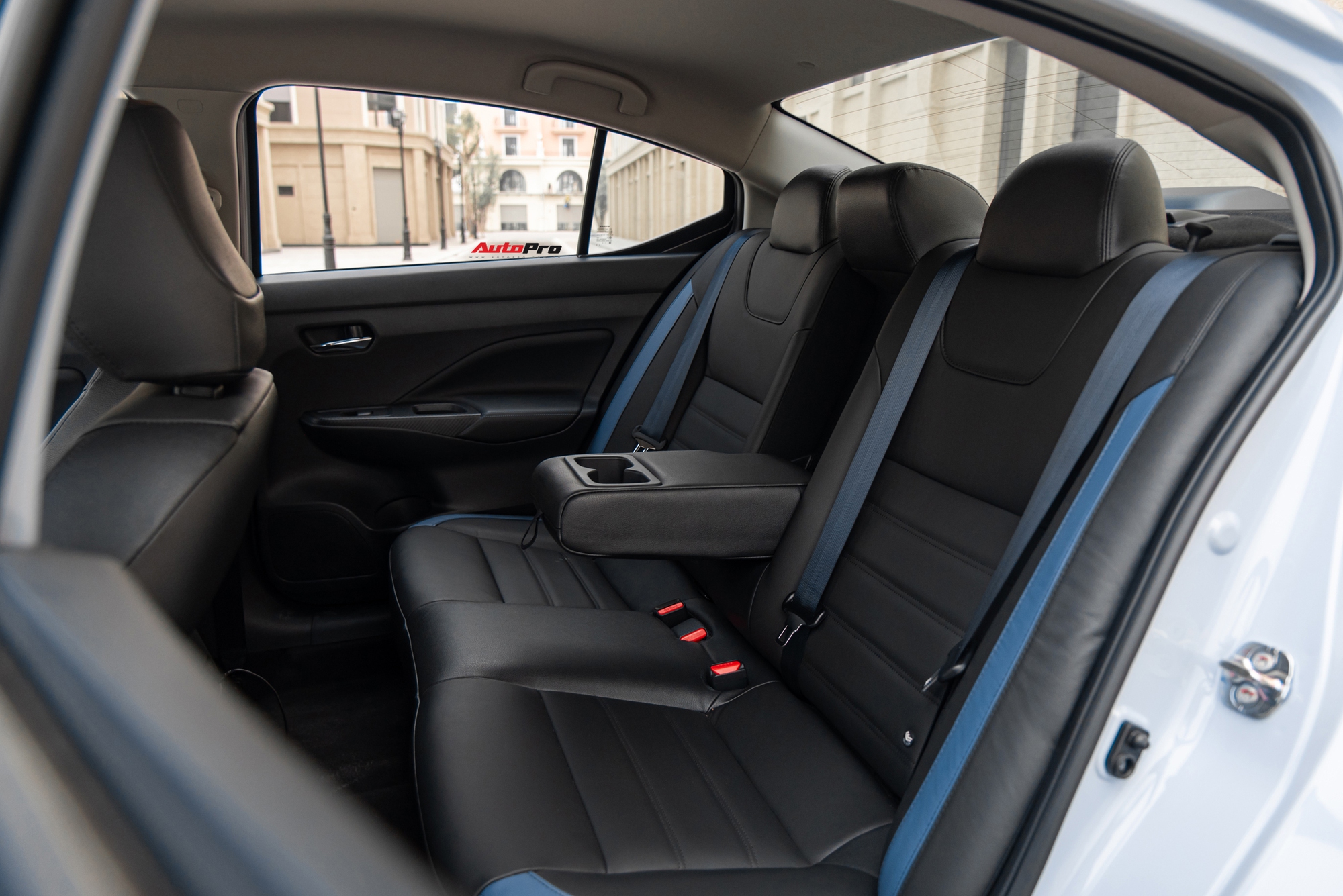 Ghế da được bọc hai tông màu đen-xanh dương khá cao cấp, cho cảm giác ngồi êm ái, hỗ trợ phần lưng người lái tốt. Chất liệu da còn xuất hiện khá nhiều ở táp-li cửa và trên bề mặt táp-lô giúp nâng tầm nội thất hơn so với các đối thủ trong phân khúc.