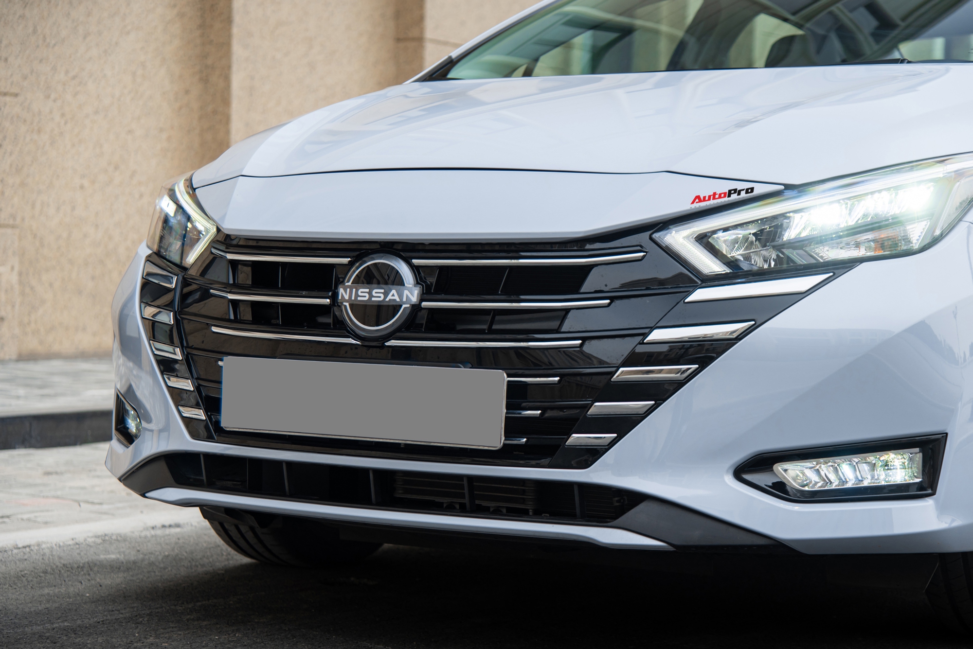 Nissan Almera 2024 thực chất là phiên bản facelift nên chỉ tinh chỉnh nhẹ về mặt ngoại thất. Phần đầu xe trang bị lưới tản nhiệt V-Motion đặc trưng của thương hiệu Nhật nhưng đã cập nhật giao diện mới nhất dạng lục giác, nan ngang khổ lớn chạy giữa chọn tông bạc sáng tương phản với tổng thể đen. Cản trước được tinh chỉnh với hốc gió bên dưới rộng hơn, đồng thời vị trí đèn sương mù được đổi lại. Logo Nissan mới thế chỗ bản cũ tại trung tâm mặt lưới tản nhiệt.