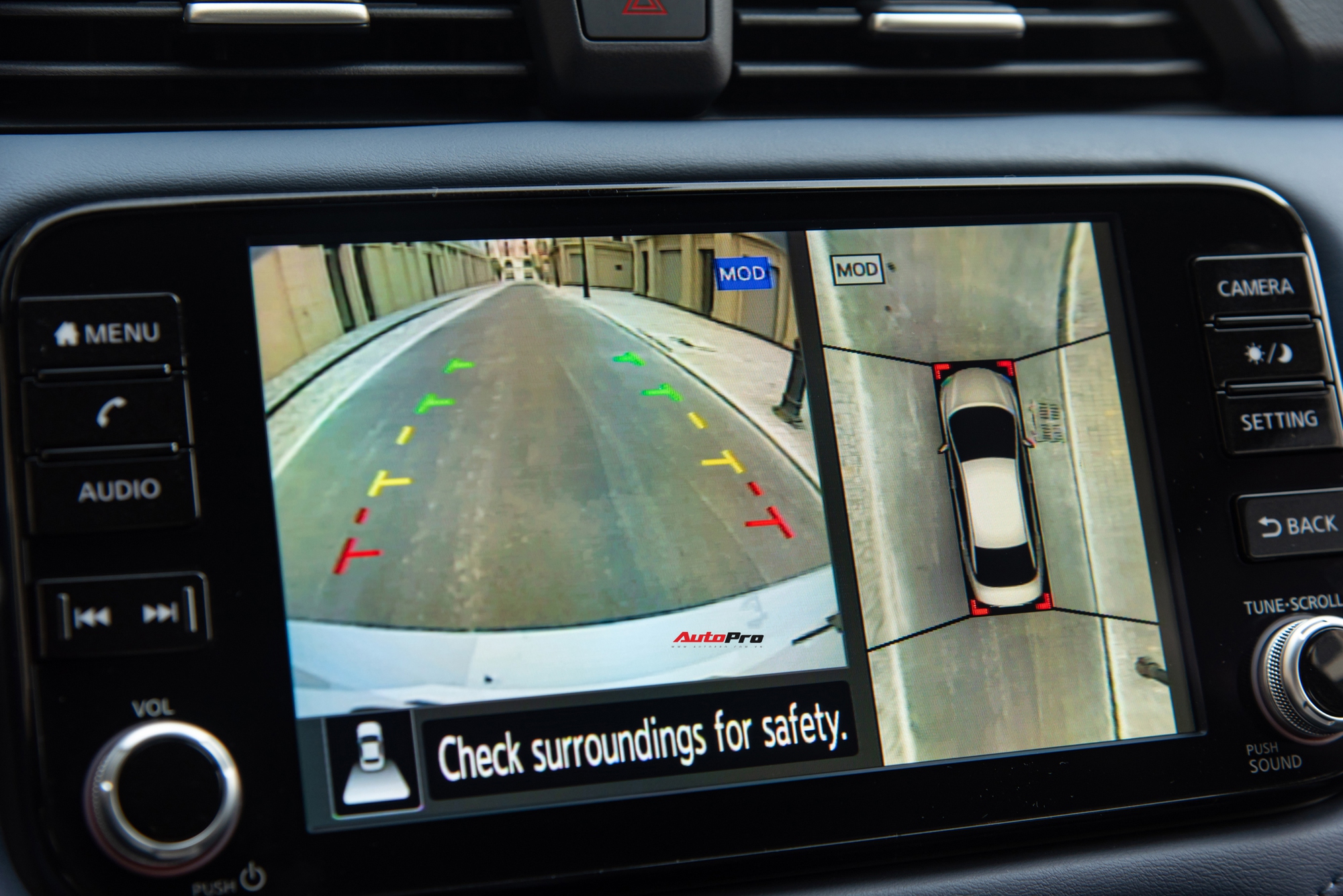 Hệ thống camera 360 độ trên Nissan Almera là duy nhất trong phân khúc như đã đề cập giúp người lái dễ dàng hình dung được không gian xung quanh khi đỗ xe và có tính năng phát hiện vật thể di chuyển (MOD).