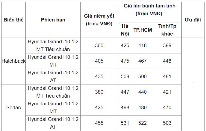 Tham khảo giá niêm yết và lăn bánh xe Hyundai Grand i10 mới nhất tháng 5/2025: