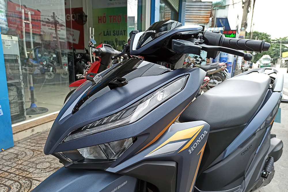 Phiên bản màu xanh thẫm đặc biệt này kết hợp với vành và chấu xe màu vàng, góp phần tô đậm vẻ đẹp thể thao, cao cấp. Bên cạnh đó, chiếc xe tay ga cũng có thêm các màu trắng mờ, đỏ và đen.
