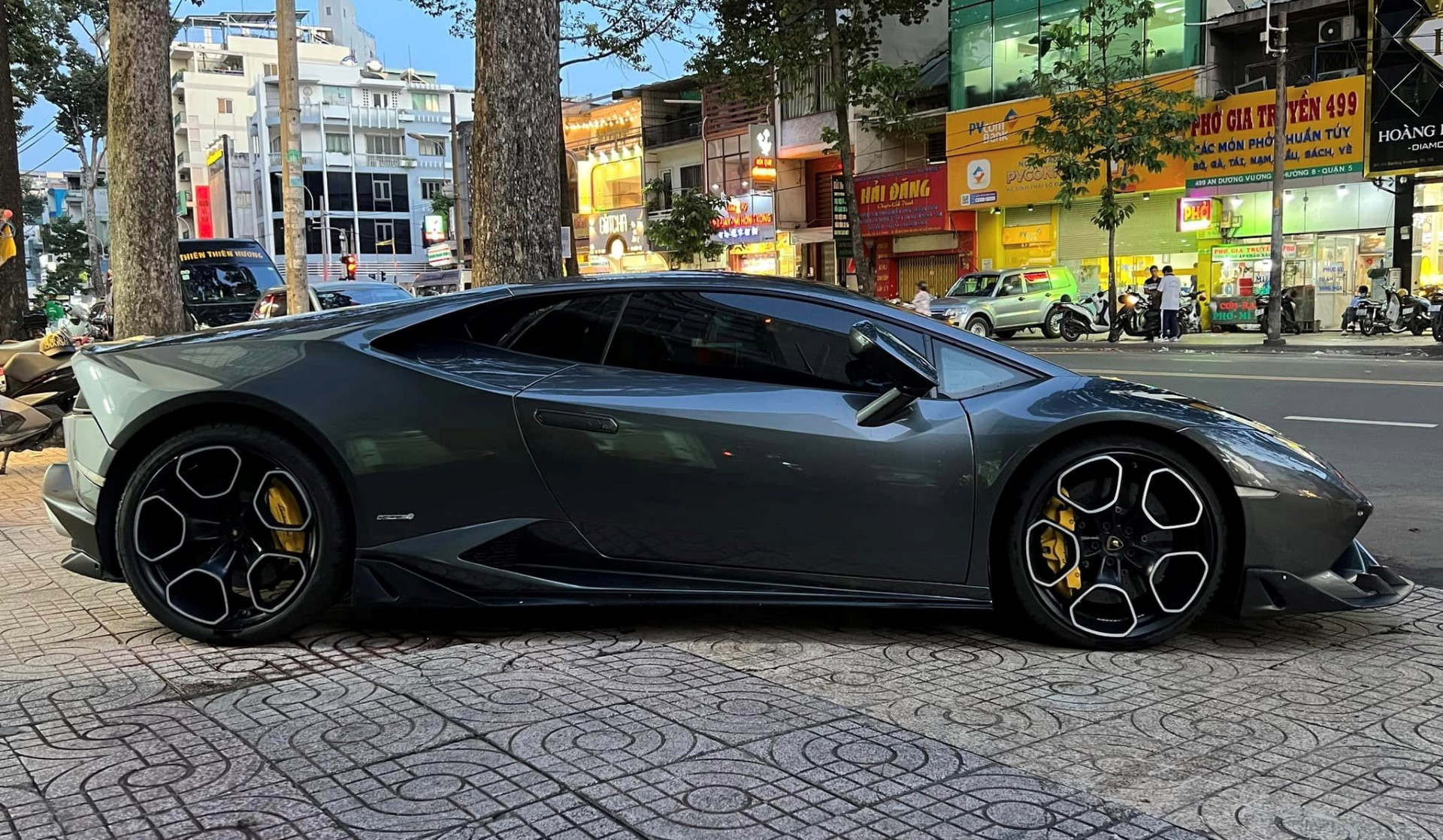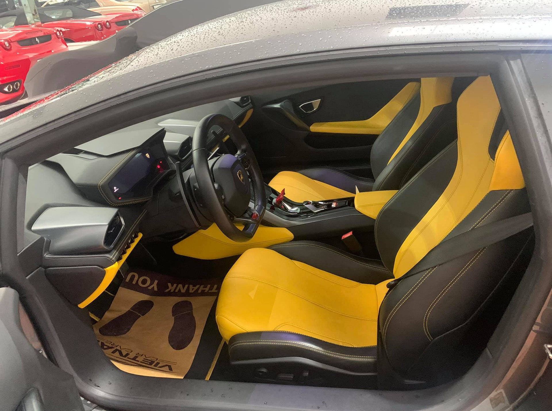 Sau 10 năm sử dụng, chiếc Lamborghini Huracan LP610-4 vẫn giữ được diện mạo như xe xuất xưởng, trong đó có màu sơn xám nguyên bản. Theo chia sẻ của một showroom kinh doanh xe tại TP.HCM, chiếc xe vừa phải thay mới 4 chiếc phuộc. Riêng chi phí mua mới đã tiêu tốn không dưới 100 triệu đồng.