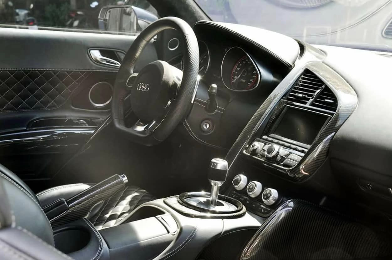 Dù đã sử dụng gần 2 thập kỷ, nội thất xe còn khá mới, từ ghế ngồi thể thao bọc da cao cấp tới một số chi tiết ốp trang trí bằng sợi carbon. Tuy nhiên, một số vị trí thường xuyên sử dụng như vô-lăng, tay nắm cửa hay bậc cửa đã xuất hiện dấu hiệu “lão hóa” theo thời gian.
