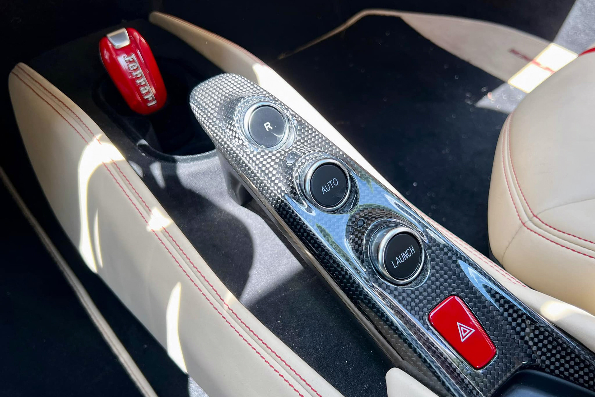 Thay vì lựa chọn tông màu đen hoặc nâu như nhiều đại gia khác thường chọn khi mua siêu xe Ferrari, vị đại gia Sài Gòn đã chịu chi hơn khi cá nhân hóa bằng khoang nội thất màu be, tô điểm bằng đường chỉ khâu và đường viền màu đỏ.