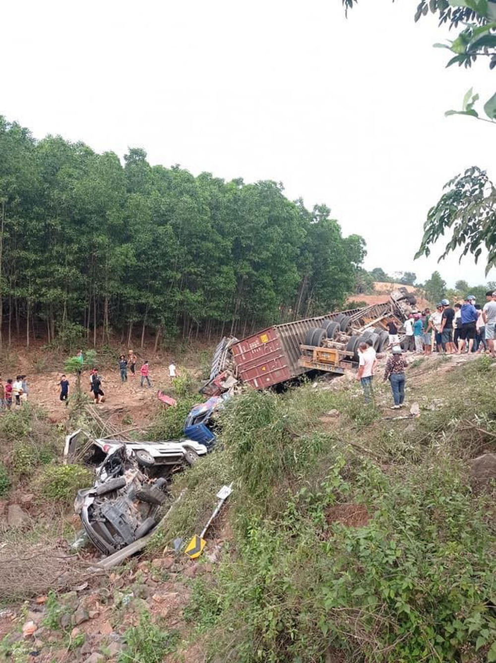 Hậu quả là xe tải đã bị lật nghiêng, nằm chắn ngang đường, còn chiếc sedan chỉ hư hỏng phần mũi xe, cụ thể là đèn pha và nắp ca-pô. Vụ việc may mắn không có thiệt hại về người.