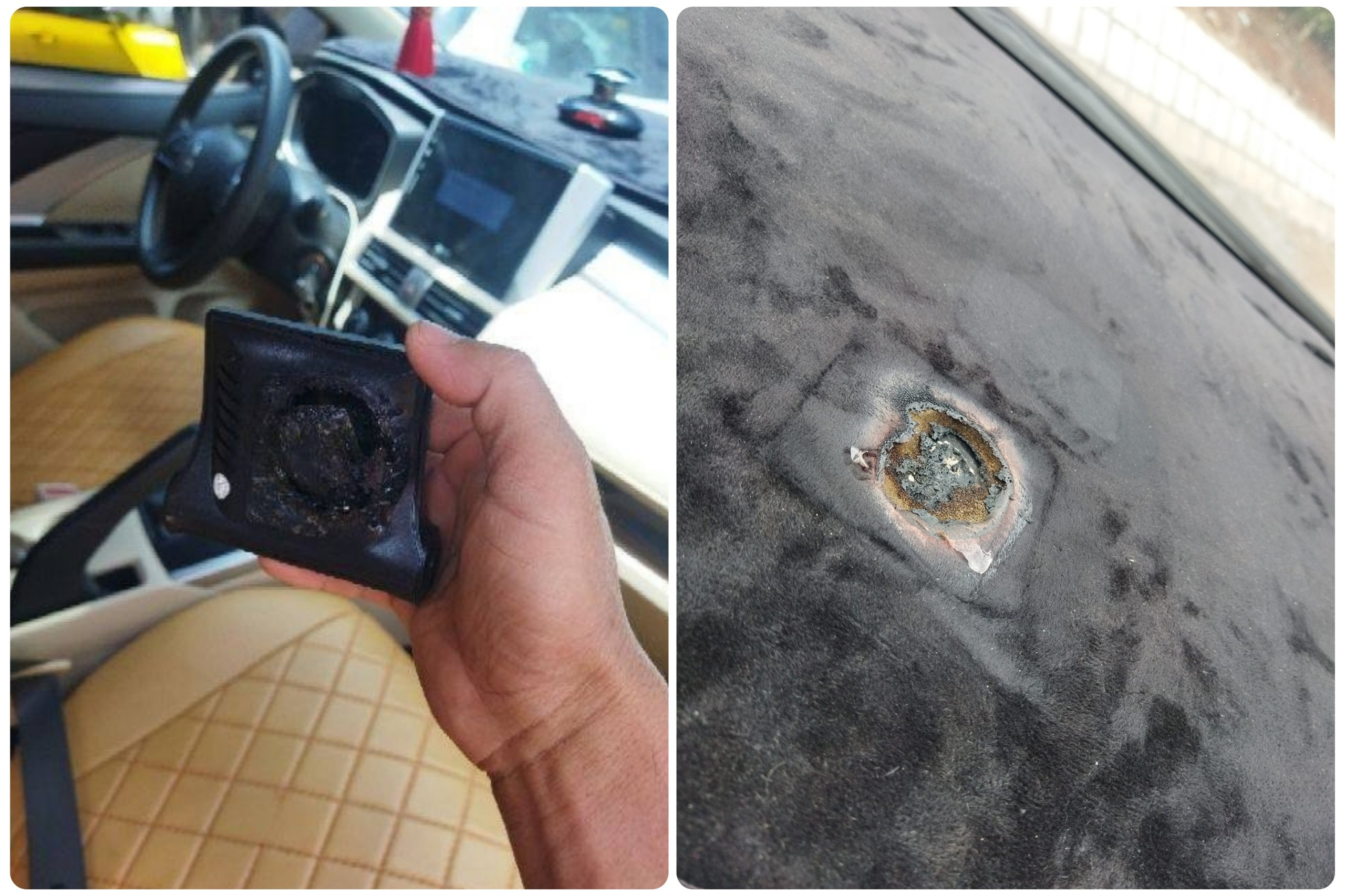 Mới đây, trên mạng xã hội lan truyền hình ảnh và thông tin về trường hợp anh H.C ở Buôn Ma Thuột "tá hỏa" khi phát hiện thiết bị cảm biến áp suất lốp dùng năng lượng mặt trời để phía trên bệ trung tâm bốc cháy, làm hỏng luôn tấm thảm che táp lô.