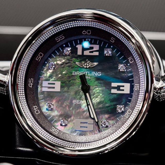 Chiếc đồng hồ đắt tiền đến từ thương hiệu Breitling, nằm trong gói cá nhân hoá Mulliner. Chi tiết đắt giá nhất trên chiếc đồng hồ này có lẽ là 8 viên kim cương xếp ở 8 vị trí khung giờ. Khung đồng hồ làm từ vàng (vàng vàng hoặc vàng trắng tuỳ chọn). Đồng hồ này có cơ chế lên dây cót tự động. Nó chẳng khác gì một chiếc đồng hồ đeo tay xa xỉ nhưng thay vì đặt trên tay thì đặt ở vị trí thu hút sự chú ý nhất trên chiếc xe, đó là bảng điều khiển trung tâm.