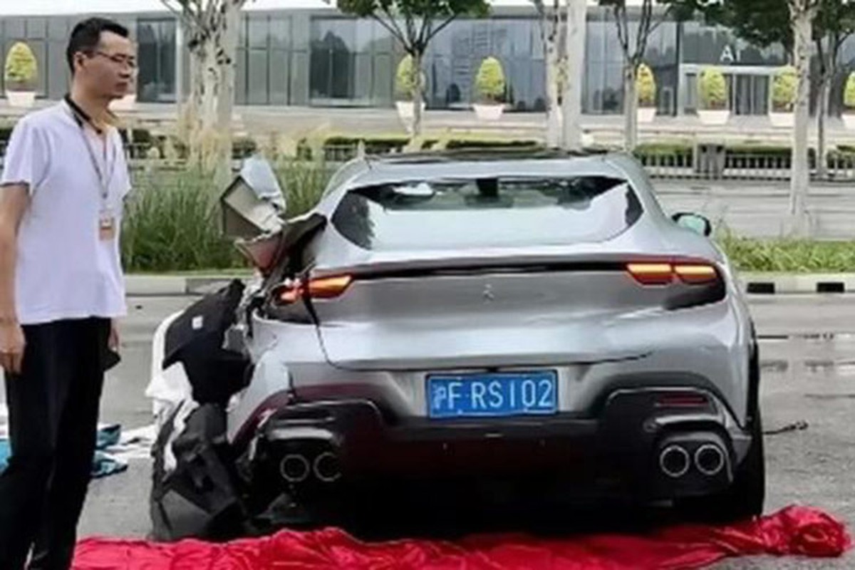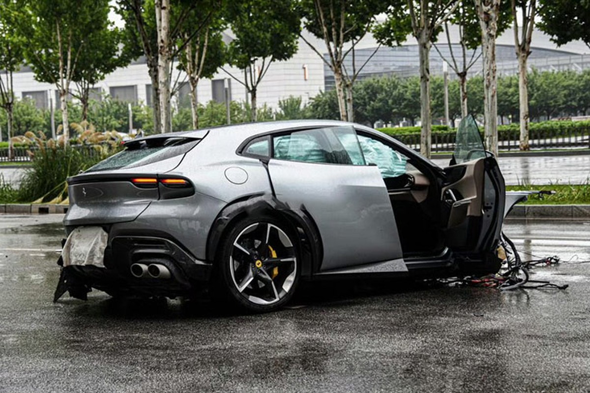 Sau cú va chạm mạnh, động cơ và một số bộ phận quan trọng khác của chiếc siêu SUV Ferrari Purosangue đã văng hẳn ra khỏi xe khi đang lăn bánh tại thành phố Tây An thuộc tỉnh Thiểm Tây, Trung Quốc.