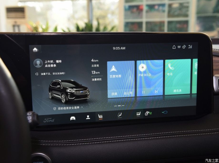 Bước vào khoang cabin, Ford Edge 2021 tại Trung Quốc đã loại bỏ đi phong cách thiết kế màn hình dọc kích thước lớn và nhường chỗ cho bộ màn hình đôi nằm ngang với hiển thị hệ thống giải trí và đồng hồ công-tơ-mét, thiết kế màn hình này có phần tương tự phong cách của một hãng xe sang tới từ Đức.