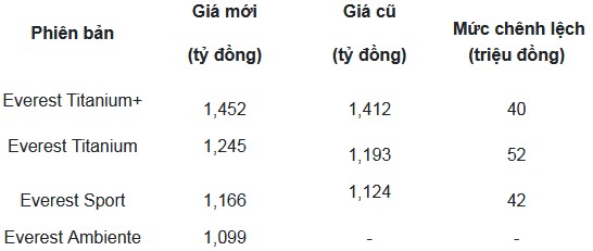 Ford Everest thế hệ mới vừa được giới thiệu tại Việt Nam với 4 phiên bản với giá bán từ 1,099 - 1,452 tỷ đồng.