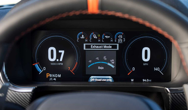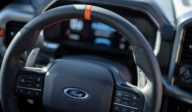 Nội thất F-150 Raptor mới không thay đổi đáng kể về thiết kế nhưng trang bị đã hiện đại hơn nhiều thế hệ trước, mà điển hình là màn hình điện tử sau vô-lăng và màn hình trung tâm kích thước lớn. Vô-lăng, cần số và các nút bấm được trau chuốt lại.