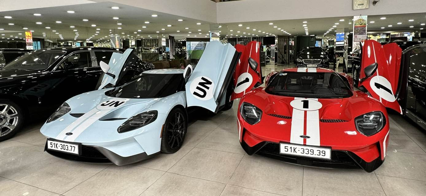 Mới đây, một đơn vị kinh doanh xe tại TP.HCM từng mua, bán nhiều siêu xe với ông Đặng Lê Nguyên Vũ bất ngờ đăng tải hình ảnh cặp đôi Ford GT trị giá trên 120 tỷ đồng. Đặc biệt hơn, cả hai chiếc xe đều mang biển trắng. Chiếc màu đỏ hiện đang thuộc sở hữu của đơn vị kinh doanh xe này, trong khi chiếc còn lại đang nằm trong bộ sưu tập xe nghìn tỷ của ông trùm cà phê.