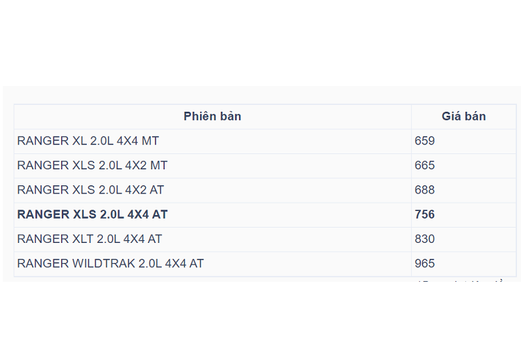 Trong 6 phiên bản Ford Ranger 2023 vừa ra mắt tại Việt Nam, ngoài Wildtrak, XLS 4x2 AT hay XLT 4x4 thì Ford Việt Nam đã bổ sung phiên bản XLS 4x4 AT lần đầu bán tại Việt Nam với giá 756 triệu đồng.