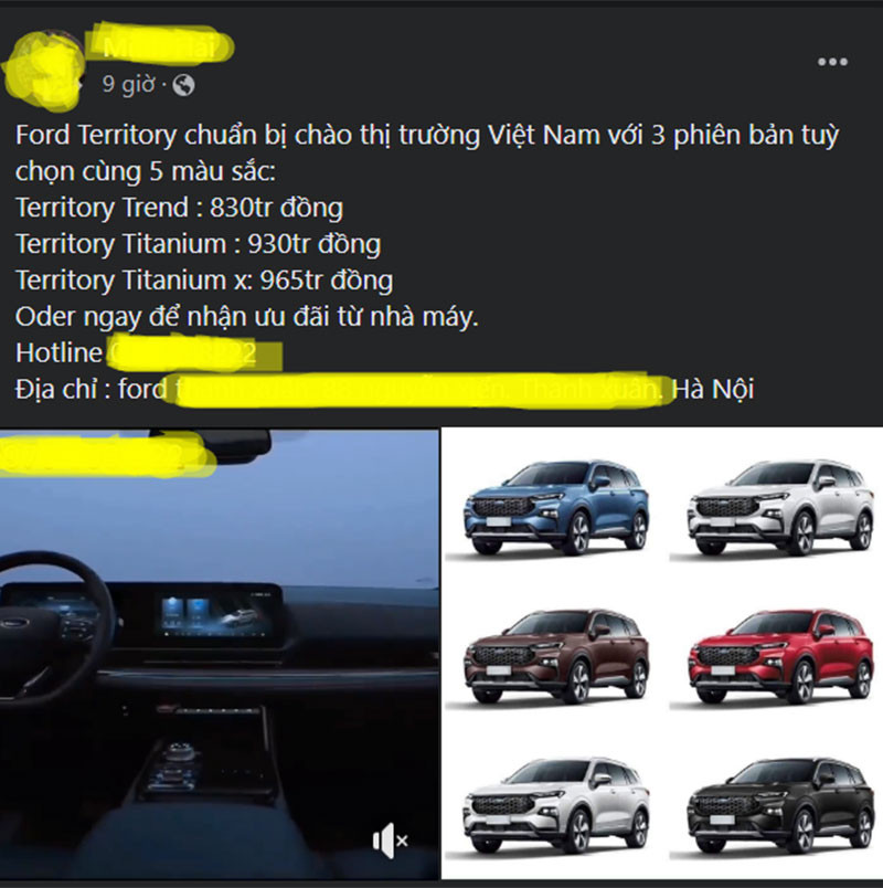 Tuy nhiên, mới đây trên hội Ford Territory Việt Nam, nhiều sale bán hàng của đại lý Ford đã đồng loạt tiết lộ giá bán của mẫu xe này. Theo đó, Ford Territory 2023 sẽ được bán dưới 3 phiên bản gồm: Trend, Titanium và Titanium X với giá xe dự kiến lần lượt là: 830, 930 và 965 triệu đồng.