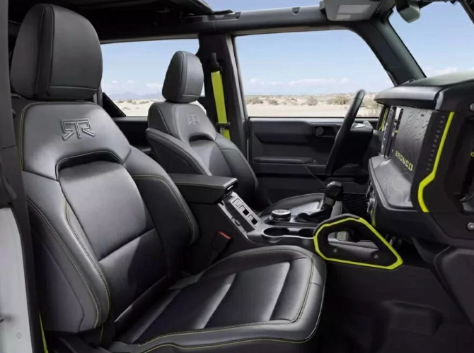 Điểm nhấn đáng chú ý nằm ở khoang cabin với phong cách thiết kế đậm chất thể thao. Ford sử dụng tông màu Hyper Lime nổi bật trên nền đen, tạo độ tương phản mạnh. Các chi tiết như táp-lô, tay nắm cửa và dây đai an toàn đều được phối màu đồng nhất, mang lại cảm giác cá tính và khác biệt rõ rệt so với các phiên bản Bronco tiêu chuẩn.