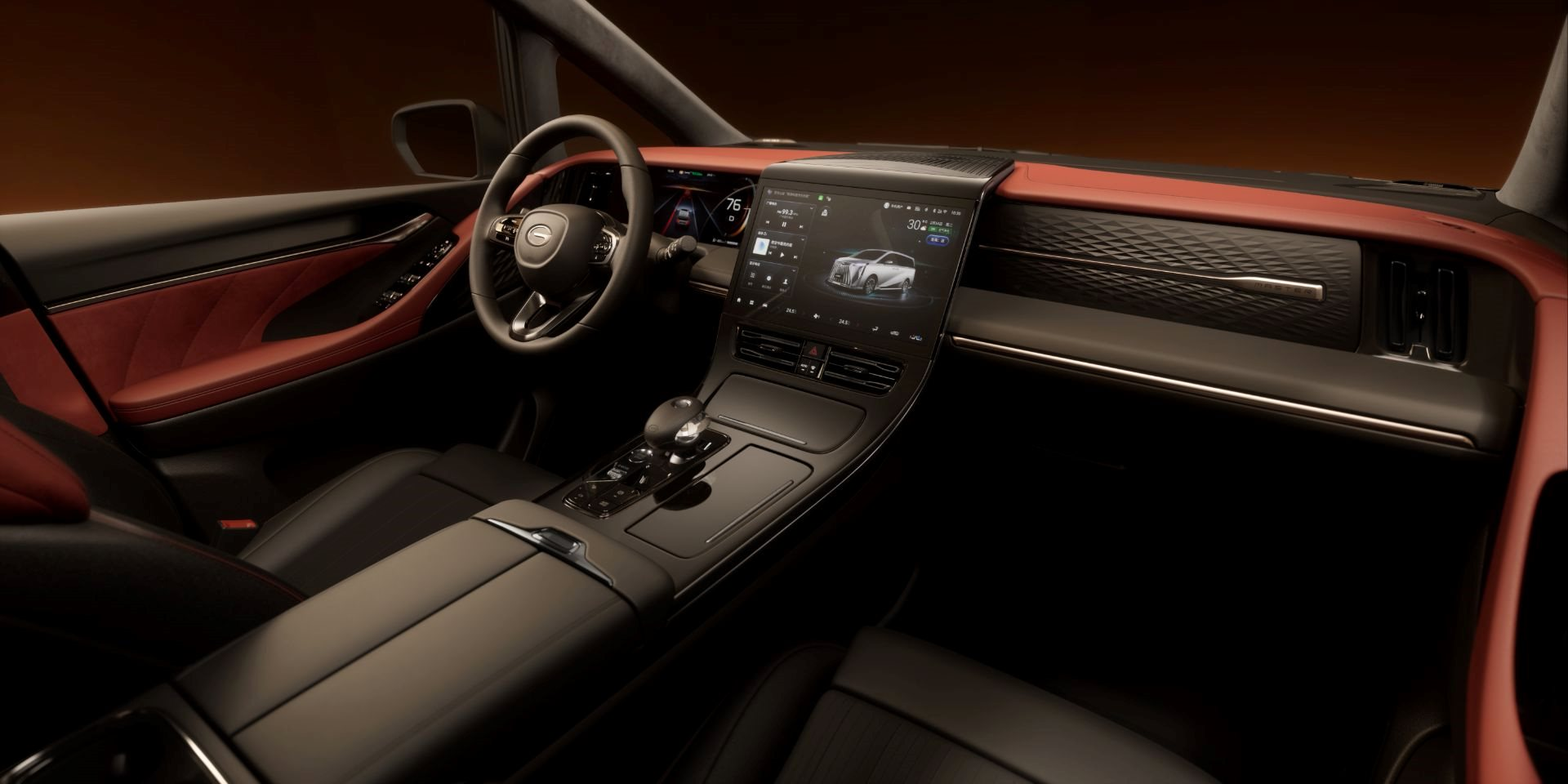 Bên trong nội thất, xe được trang bị vô lăng ba chấu tích hợp phím chức năng, màn hình điều khiển trung tâm cỡ lớn dạng nổi, bảng đồng hồ full LCD tích hợp nhiều tính năng. Hệ thống điện tử trên xe sử dụng chip 8155, giúp xử lý thông tin nhanh chóng và mượt mà. Ở trên các phiên bản cao cấp, xe sẽ được trang bị hàng ghế thứ hai hạng thương gia với bệ tì tay tích hợp bảng điều khiển ở giữa.