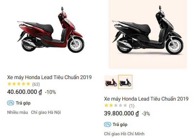 Trong khi đó, Honda Lead 2019 đang có mức điều chỉnh giảm nhẹ từ 7-10% tại gian hàng của sàn thương mại điện tử. Nhìn chung, giá của chiếc xe tay ga quốc dân đã có phần ổn định và không chênh quá cao so với đề xuất của hãng như nhiều dòng xe khác.